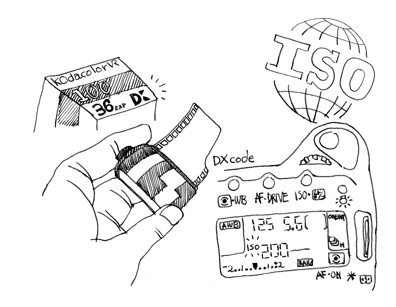 카메라에 전자식 시스템이 도입되면서 필름의 감도를 자동으로 읽어 들이는 시스템도 도입됐다. DX(Digital IndeX)는 필름의 정보를 카메라에 알려주는 일종의 바코드였다. 비교적 최근에 출시한 초소형 자동 카메라 중에는 감도를 수동으로 선택할 수 없는 제품도 있다. 이러한 카메라에 DX 코드가 없는 필름을 사용하면 카메라가 제멋대로감도를 ISO 100으로 설정하기도 했다.