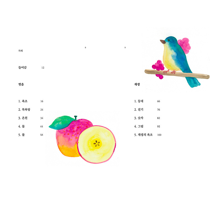 연두는 첫마디에서 두 번째 마디로, 세 번째 마디로 건너왔고, 나는 접었던 네 개의 손가락을 펴서 손바닥 한가운데에 오도록 손을 오목하게 만들었다. 연두가 안전하게 손바닥 한가운데 들어왔을 때, 조심조심 걸어가 문을 열고 밖으로 나가서 나무 아래 검은흙에 내려주었다. 연두는 바닥에 떨어지면서 뒤집어졌고, 가는 금빛 다리들을 빠르게 바들거렸다. 또 내가 나서야 했다. 이제는 주저함이 없었다. 친구가 된 이상 내가 도와주어야 하니까. 엄지와 검지를 사용해서 연두를 집어서 바로 세워주자 머리를 내쪽으로 돌리더니 고맙다는 인사를... (한다고 착각이 들만큼 정말로 잠깐 몸을 돌렸다.) 나무 둥치를 타고 위로 위로 올라갔다. 내 안의 덩치 큰 겁쟁이가 물러나고, 용감한 어린아이가 깨어난 것 같았다.