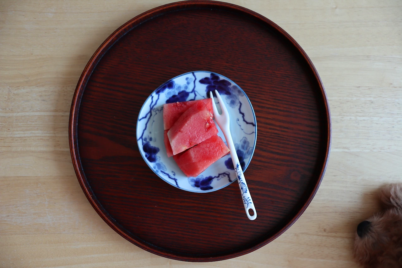 남편은 길을 걷다 수박만 보면 물어본다. 어제까지 수박을 먹었어도 오늘 수박이 없으면 또 사자고 한다. 밥은 덜 먹더라도 여름이면 수박에 사족을 못 쓰는 남편이다. 과일을 손에 들고 먹기 싫어하니 수박을 사 오면 껍질을 모두 걷어내고 속살만 네모지게 썰어 큰 유리통에 담아놓는다. 냉장고에서 얼얼하도록 시원해진 수박을 접시에 담아내면 만족스레 수박을 먹는 남편의 귀여운 웃음이 떠오른다.