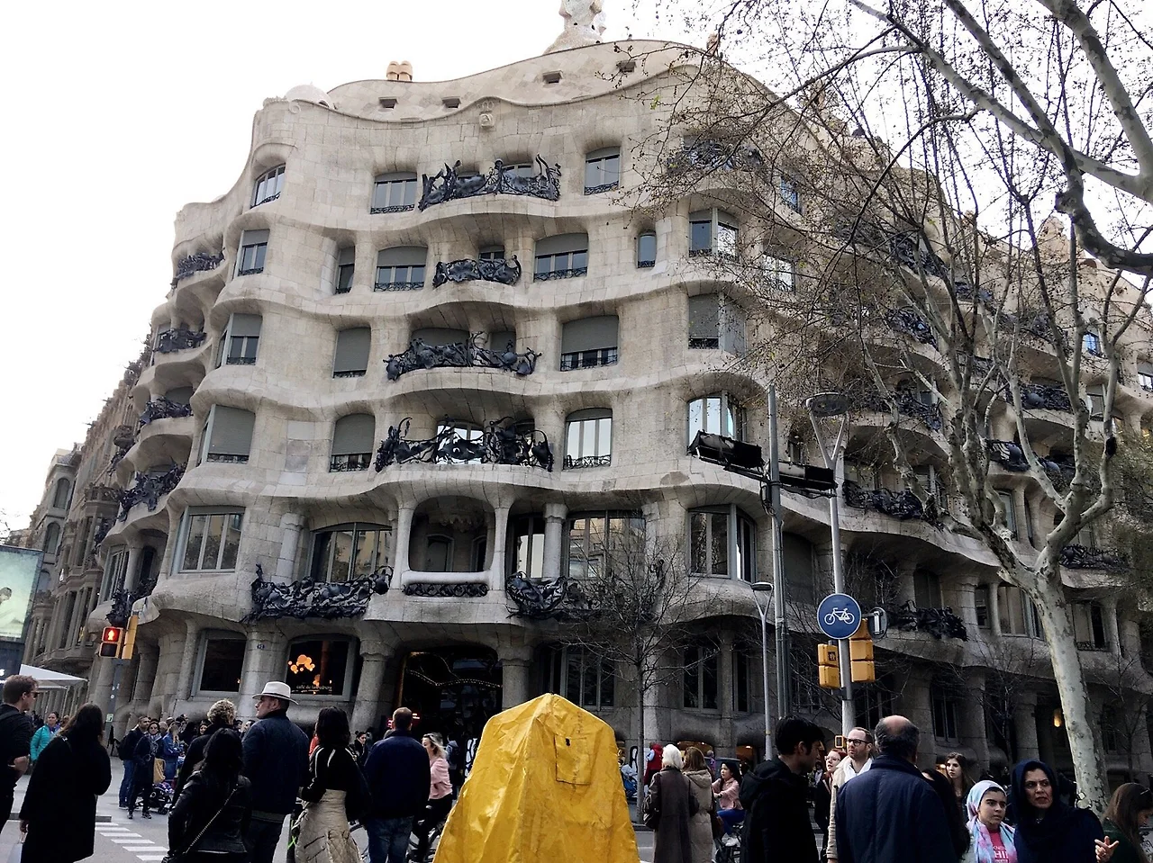 오른쪽; 당시엔 채석장이라 불리는 수모를 당했지만 사실은 [까사 바뜨요]와는 달리 설계부터 조각품 디자인까지 가우디가 도맡아 정성을 쏟은 [까사 밀라]