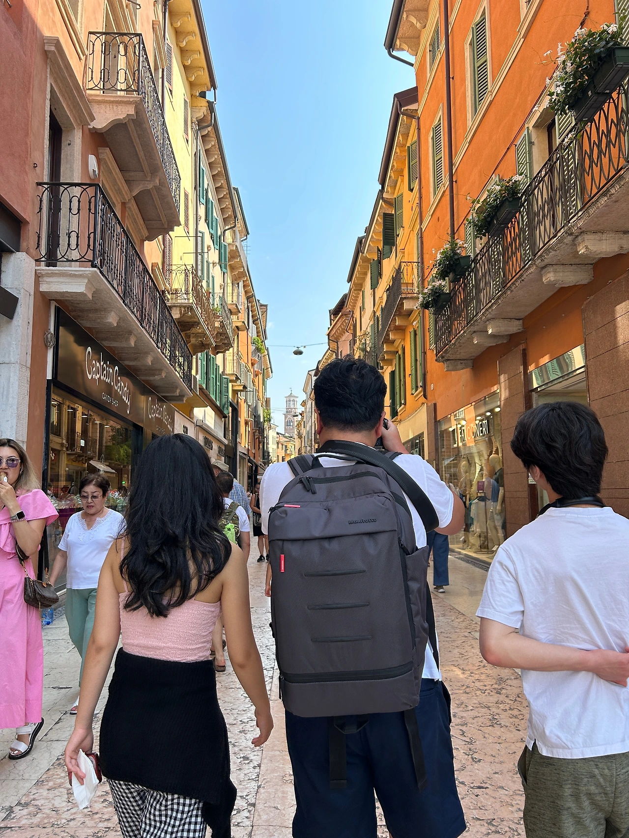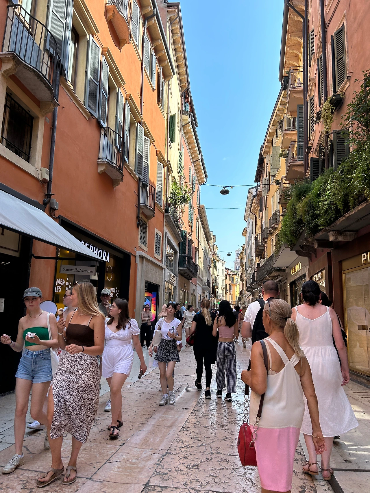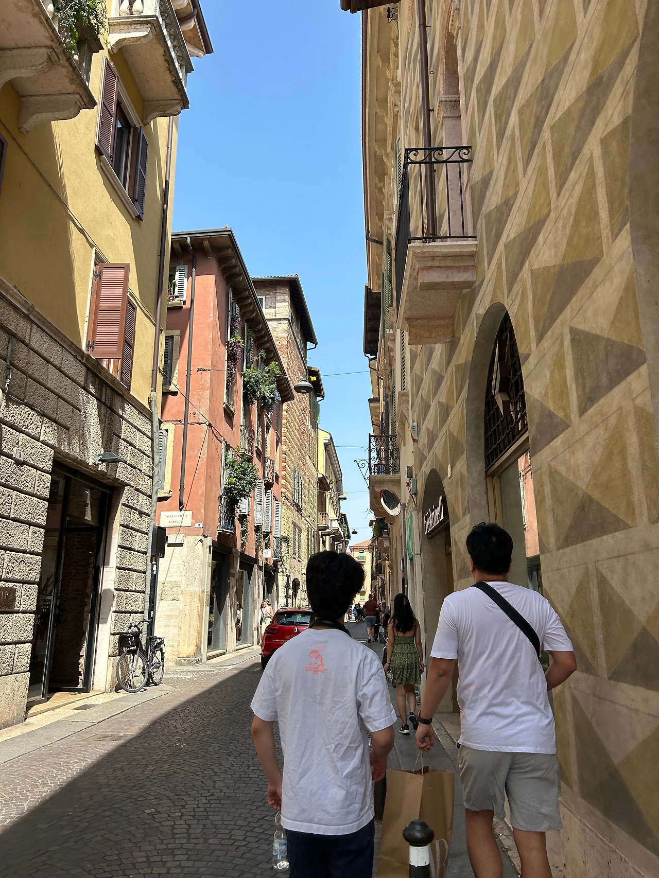 그래도 여행은 날씨가 7할이다. 아니 8할이다. 해가 나야 거리도 예쁘고 사진도 잘 나오고 다니기도 편하고 좋다! 물론 폭염은 열외다. 음료수가 당기는 날이었지만 스타벅스에서 시원한 음료 마시고 쇼핑하기에는 딱 좋은 날씨! 사람이 너무 바글거리는 줄리엣의 집은 살짝 보기만 하고 패스~ 소설 속의 주인공의 집을 실제 집처럼 홍보하는 게 좀 이상하다며 사람이 너무 많으니 그냥 지나가자던 아이들… I agree!
