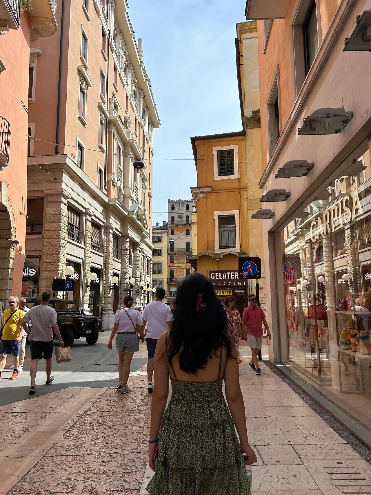 아이들 학기를 마치고 바로 잡은 휴가 기간은 히드로 공항 파업도 피했다. 이태리 북부의 날씨가 매우 변덕스럽고 여름 날씨에도 불구하고 춥다는 얘기를 들었다. 날씨앱도 물론 매일 비소식을 알려줘서 더위 걱정은 전혀 하지 않았다. 전 일정 돌로미티 하이킹을 할 예정이었기 때문에 모두 다 트레킹 슈즈를 준비했고 아이들은 평상시는 불편해서 트레킹 슈즈를 신을 수 없다는 통에 운동화도 챙겼으나 남편과 나는 짐을 좀 줄이자는 이유도 있고 (사실은그냥 귀찮아서) 트레킹 슈즈로 전 일정을 버티기로 하고 떠났다. 도착한 베로나는 36도 해가 반짝하여 기분은 좋았으나 트레킹화가 너무 불편하고 더웠다. 호텔에 짐을 풀고 결국엔 남편과 나는 새로 운동화와 가벼운 옷을 샀다. 머리부터 발끝까지 쇼핑! 이런 큰 그림 그린 거냐는 딸의 말에 할 말이 없었다. “딸아, 미리 계획한 건 아니란다. 너도 알다시피 너무 더웠잖니…” ^^;;;