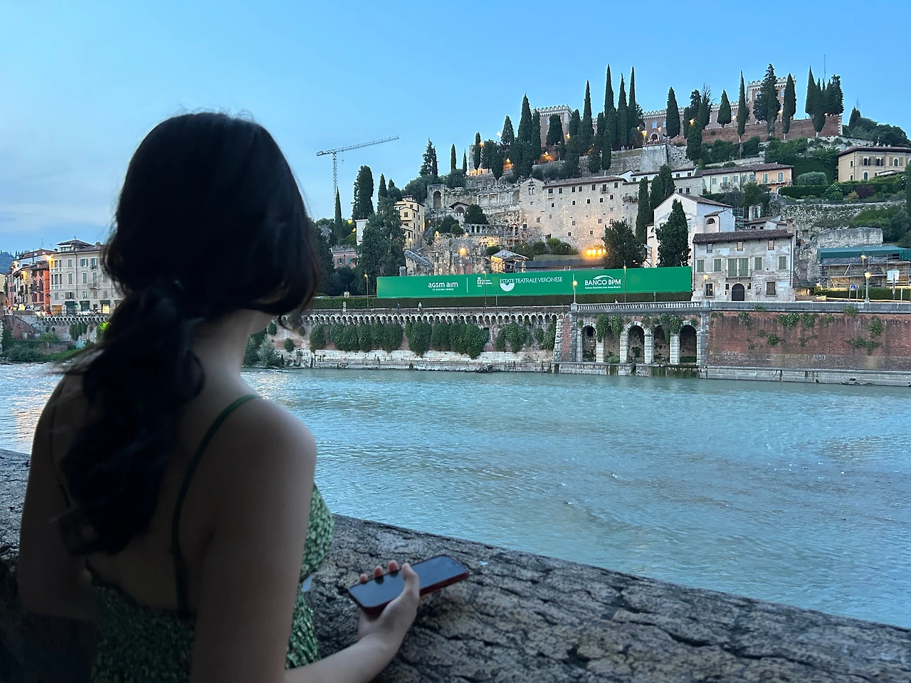 2차 세계 대전 때 무너졌던 피에트라 다리(Ponte Pietra). 마을 사람들이 무너진 다리의 조각들을 주워서 보관하고 있었고 전후 복구할 때 그 조각들로 다리를 다시 만들었다고 한다. 저녁 먹고 소화시키기 딱 좋은 산책코스. 해가 넘어가니 이제야 기온이 조금 내려가는 듯…