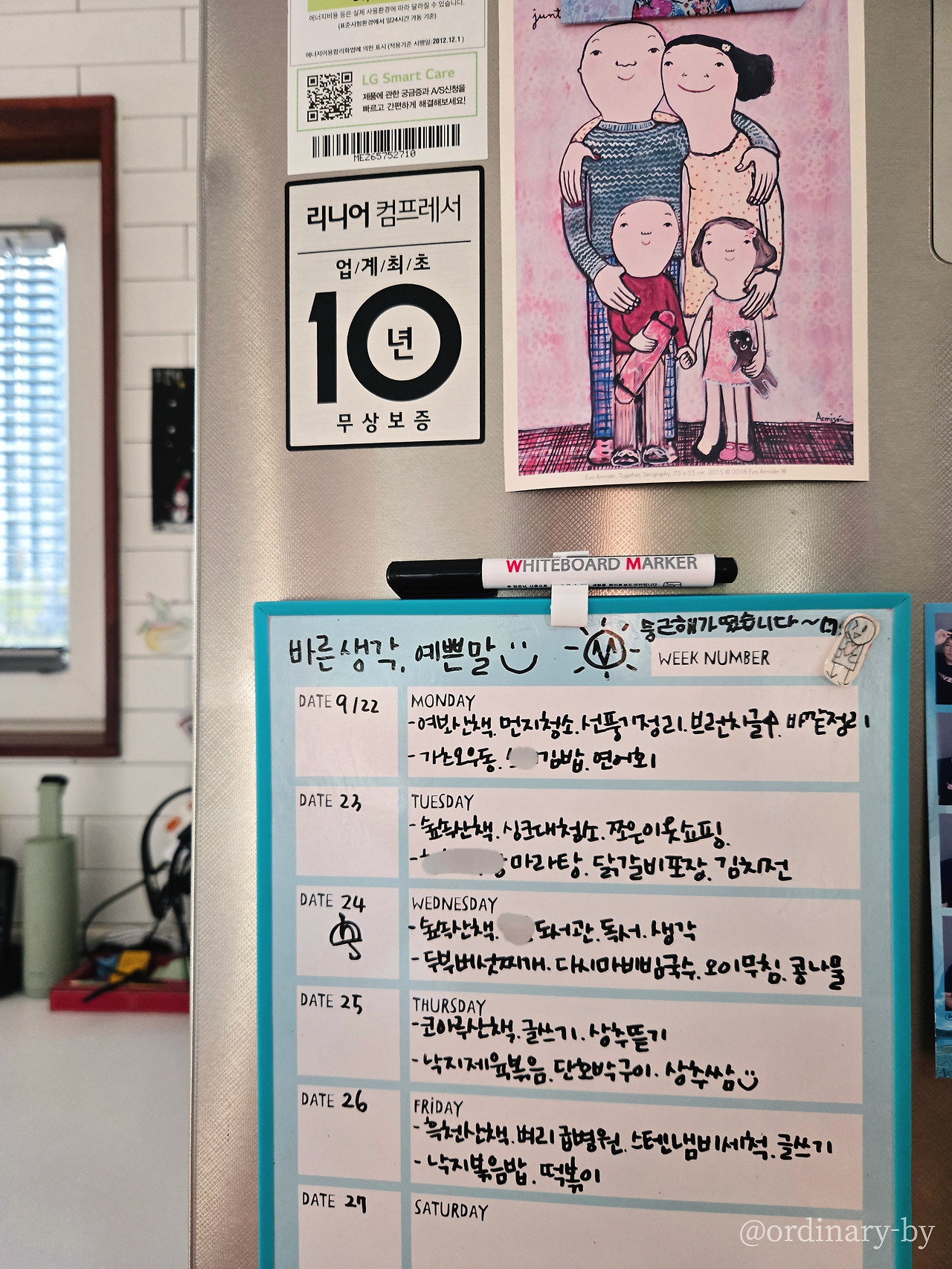 V△X. 이 뜬금없는 표시는 아주 중요하다. 해낸 일에는 V를, 해내는 중에는 △를, 하지 못한 일에는 X를 표시한다. 마치 도장 깨기처럼 나의 일들에 대한 표시를 해나가며 일 년의 시간을 보낸다. 스스로에게 잘했다고 칭찬해 주기도, 못한 일들이지만 내년에 다시 도전해 보자며 격려해주기도 한다. 냉장고 문에 붙어있는 A4사이즈의 주간 계획보드는 체크표시 없이 소소하게라도 하루의 일 중에 몇 가지만 마카펜으로 쓴다. 월요일마다 ‘브런치 글 올리기’를 적고 나면 뿌듯함이 밀려온다.