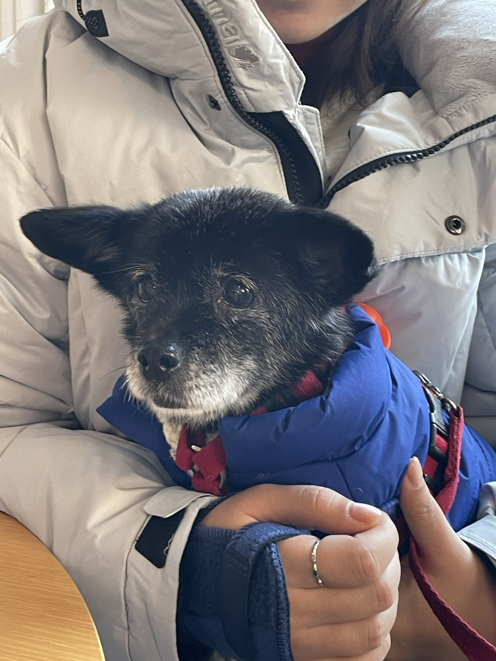 Bandal always looked good in bold colours, but spring yellow suited her best. Her jet-black fur grew whiter over time, and those lighter tones made bright colours even more beautiful on her. Strangely, as her fur aged, she looked more like a baby. Bandal had always been timid, quiet, and reserved. But after moving into my parents’ home, her face began to radiate the warmth of a beloved youngest daughter. As she grew older, she also grew cheekier—speaking her mind like the spoiled baby of the family. Mom tried to get her to eat vegetables by mixing them with minced meat and tofu, but Bandal would expertly pick out only the meat with her impossibly precise tongue. She was fiercely opinionated on walks, too. If we tried to lead her somewhere she didn’t want to go, she would plant her little legs firmly in protest. No matter how small she was, the strength in her will amazed us. She would even wake my parents up at dawn every morning, earning her the nickname “Kant Dog.” And yet, her essence was always the consideration. Though she’d bark her head off during bath time, she never once bit or scratched us. Afterward, she’d dash out of the bathroom, as if released from prison, full of joy. It was impossible not to laugh. Bandal never held back from expressing herself, and I loved that about her. I wanted her to always do whatever she wanted, and always be happy. If I could share my time to give her more joy, I would have done so without hesitation. Bandal was a gift in my life. Thanks to her, I think I grew into a slightly better adult.