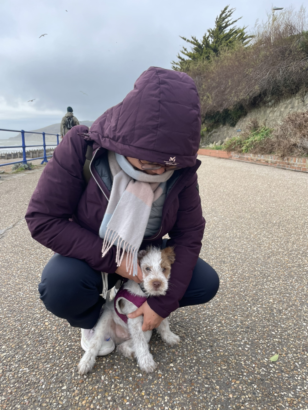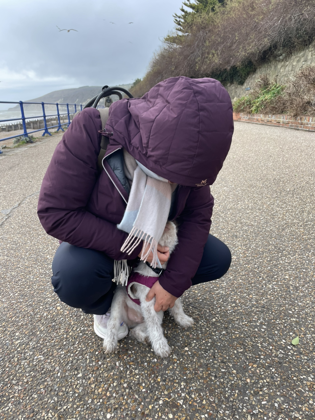 It was a weekend trip with my mom to a small coastal town not far from where I live. Along a seaside path, we met a tiny white puppy just a few months old. The puppy trotted over to my mum without hesitation, as if they were already old friends, plopped herself at her feet, and begged for cuddles with shameless charm. To the flustered owner, I reassured, “It’s okay—we have a dog, too. Would it be alright if we took a photo together?” They smiled and agreed. That day, my mom wore a violet coat—the one she often wore when walking Bandal. “Maybe I still smell of Bandal,” she said, watching the puppy nuzzle close. She looked at the puppy as if looking at Bandal again. I said, a little too candidly, that we had recently lost our dog, and that moments like this meant a lot to us. The owner, caught off guard, seemed unsure how to respond. Leaving them behind, I snapped a photo of my mom and the puppy at her feet. Later, when I told her what I had said, Mom gently suggested that it might not have been the most considerate thing to say—especially to someone who had just welcomed a new puppy. “Next time, just say we have a dog,” she said. And she was right. I only wanted to say that we once had a dog, and that we loved dogs dearly. Mom later said, “Bandal is still with us. We still think of her, talk about her, laugh at her memories. That means she hasn’t ended—she’s still here.” Since then, whenever I meet someone’s dog, I say, “I have a dog too,” and show them Bandal’s photos on my Apple Watch. That Bandal, in that moment, is not past tense—she’s alive in the present, still a part of my life.