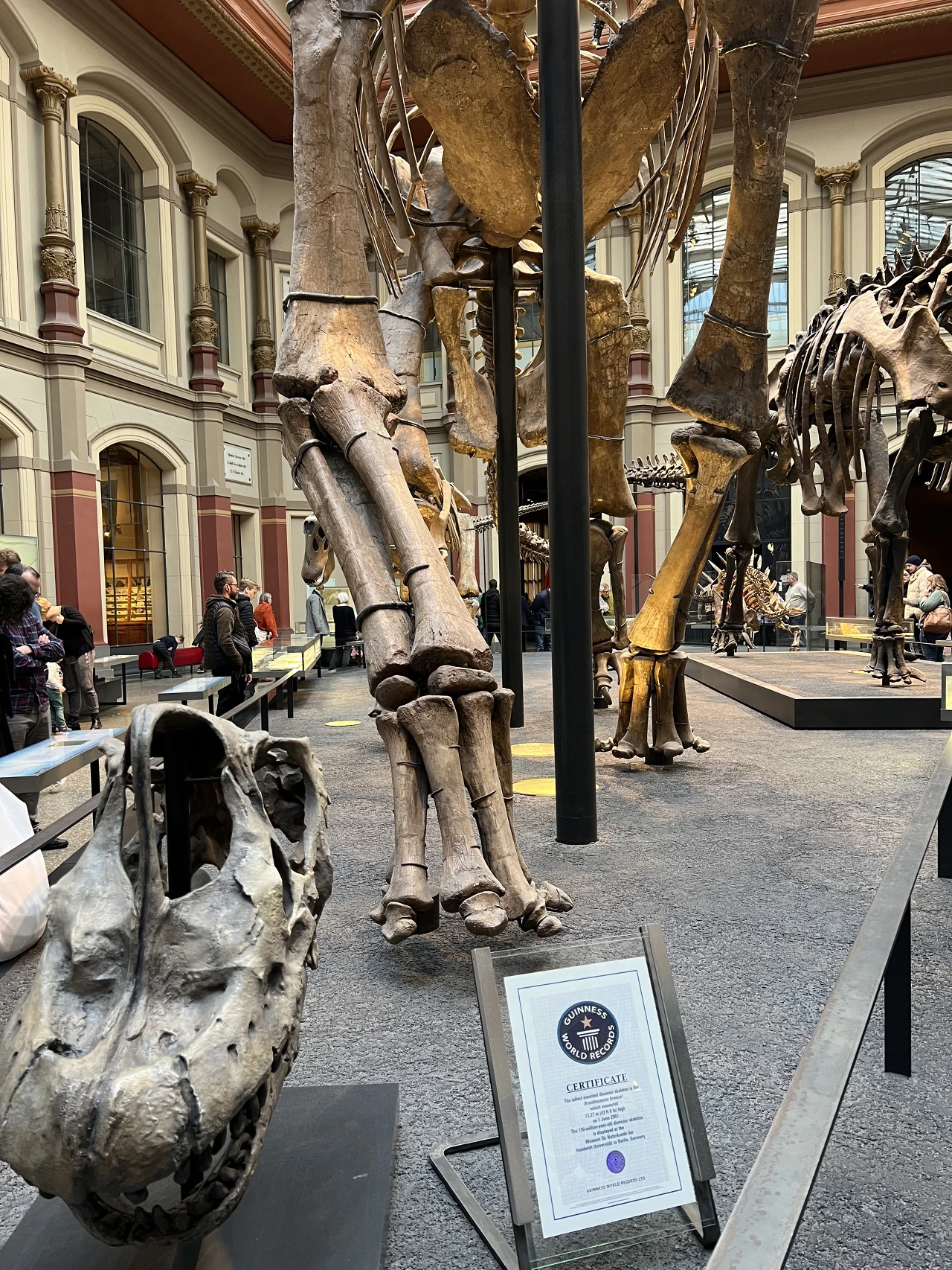 13.27m. 세계에서 가장 큰 공룡의 뼈로 기네스북에서 인정한 브라키오사우루스의 뼈가 입장하자마자 압도적이다. 전시물을 보니 이렇게 어마어마한 생명체가 지구상에 존재했었다는 사실이 실감 난다. 첫인상은 거-대하다, 머리가 몸에 비해 말도 안되게 작다. 공룡은 효율성이 낮아 지구상에서 멸종한 생명체라고 하는데, 결국은 지구의 생애주기 중 어느 한 시기와 맞물려 사라진 거겠지.