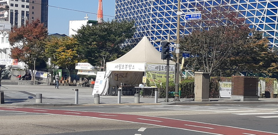 다음날 서울로의 귀가 전 전통시장 안에 있는 청년몰에 들렸다. 가는 길에 보게 된 세월호 추모 천막과 소녀상이 아침부터 마음을 울렸다. 아픈 기억이기에 꺼내기 힘들어하는 그들을 도시 한복판에서 공유하며 함께 기억하고 추모하고 있다는 사실에 전주시민들에게 절로 존경의 마음이 생겼다.