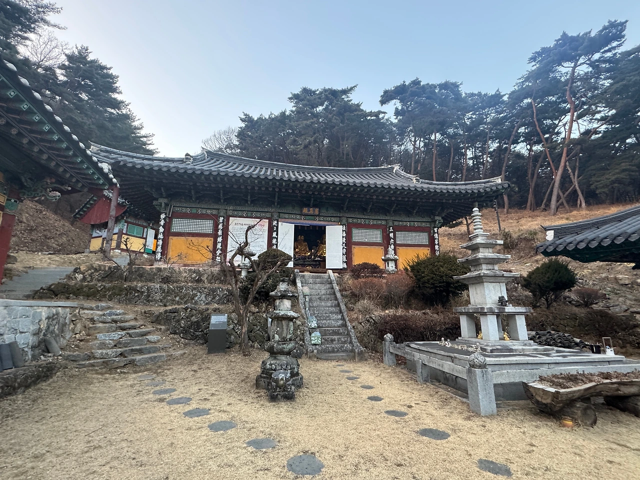 이 근방 가장 큰 사찰이라던 광흥사는 생각보다 너무 작았다. 차도 없고 사람도 없고 절 앞에 백구 한 마리만 있었다. 들어가도 되나 싶어 주저하다 그냥 돌아갈까 했다. 해가 거의 떨어지고 있는 산중의 외딴 절이라 남편은 차에 있겠단다. 힘들게 여기까지 왔는데 아무것도 안 하고 가기 그래서 아이와 얼른 108배만 하고 오겠다 하고 들어갔다.