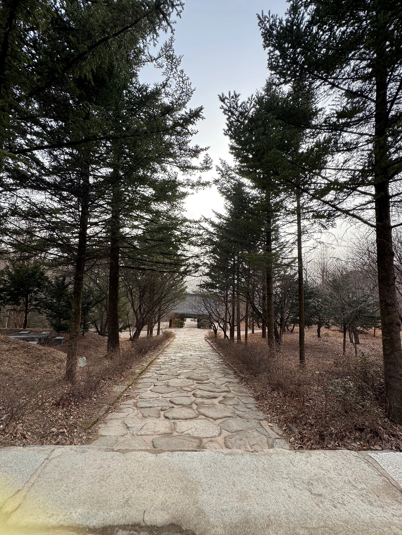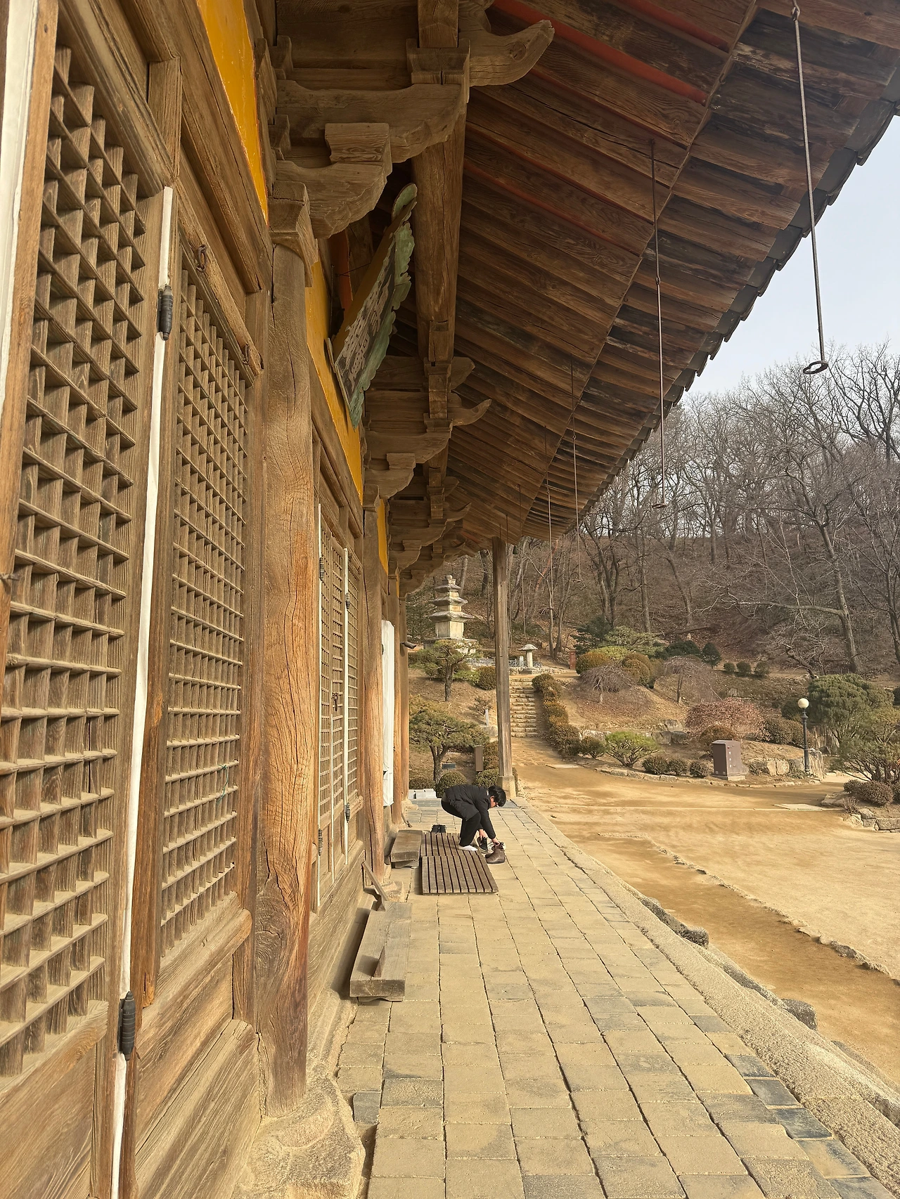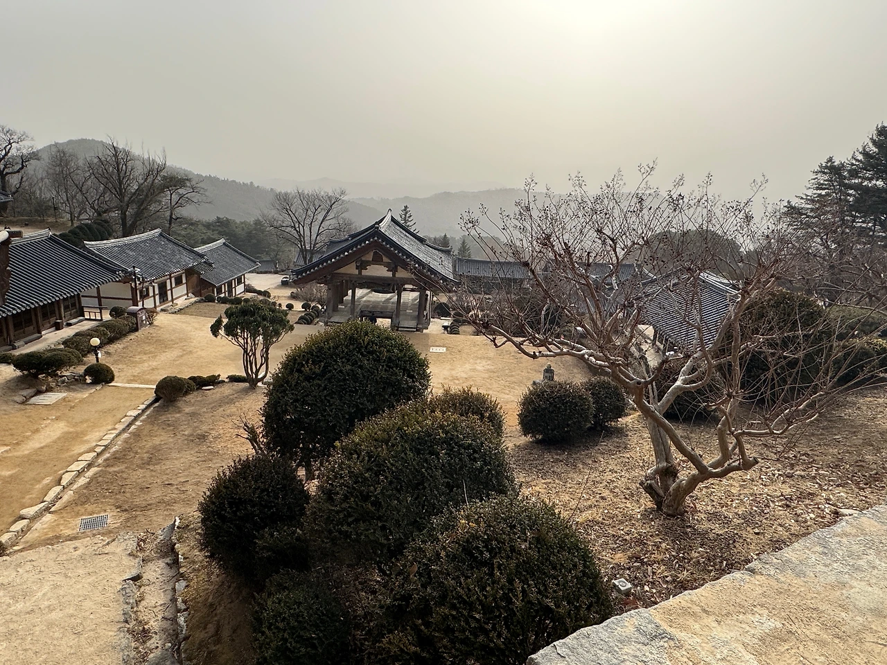 나가는 길에 천왕문 있는 데까지 계단을 내려가며 절 아래 펼쳐진 풍경을 본다. 그때 그 풍경과는 좀 다른 느낌. 모래바람이 부는 오후여서 그런 건지, 걸어 올라오는 수고로움이 빠져서 그런 건지, 아님 새로 바닥에 돌을 깔아 그런 건지 모르겠지만 그때 그 느낌은 아니다.