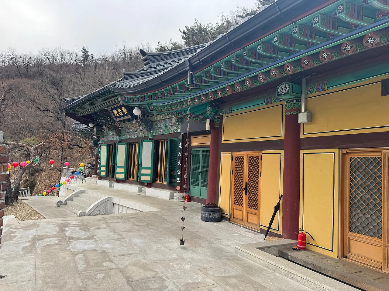 "이 절에서는 밖에서 절하는 건가 봐."