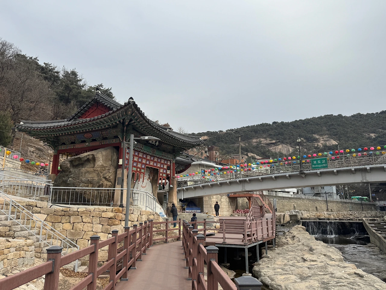 108배를 마치고 한동안 절집 주변 사진도 찍고, 천을 따라 흐르는 물소리도 듣고, 물 위에 둥둥 떠다니는 오리도 구경하며 시간을 보냈다.