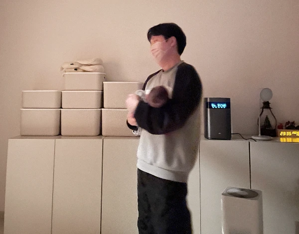 새벽에 아들 돌보느라 마스크까지 쓰고 아가를 재우는 남편. 고생이 많아ㅠㅠ