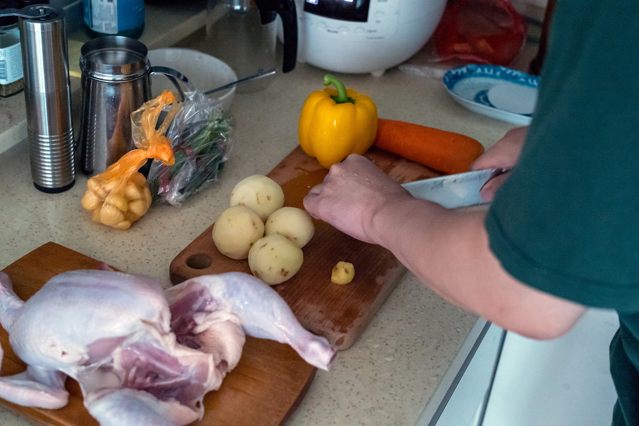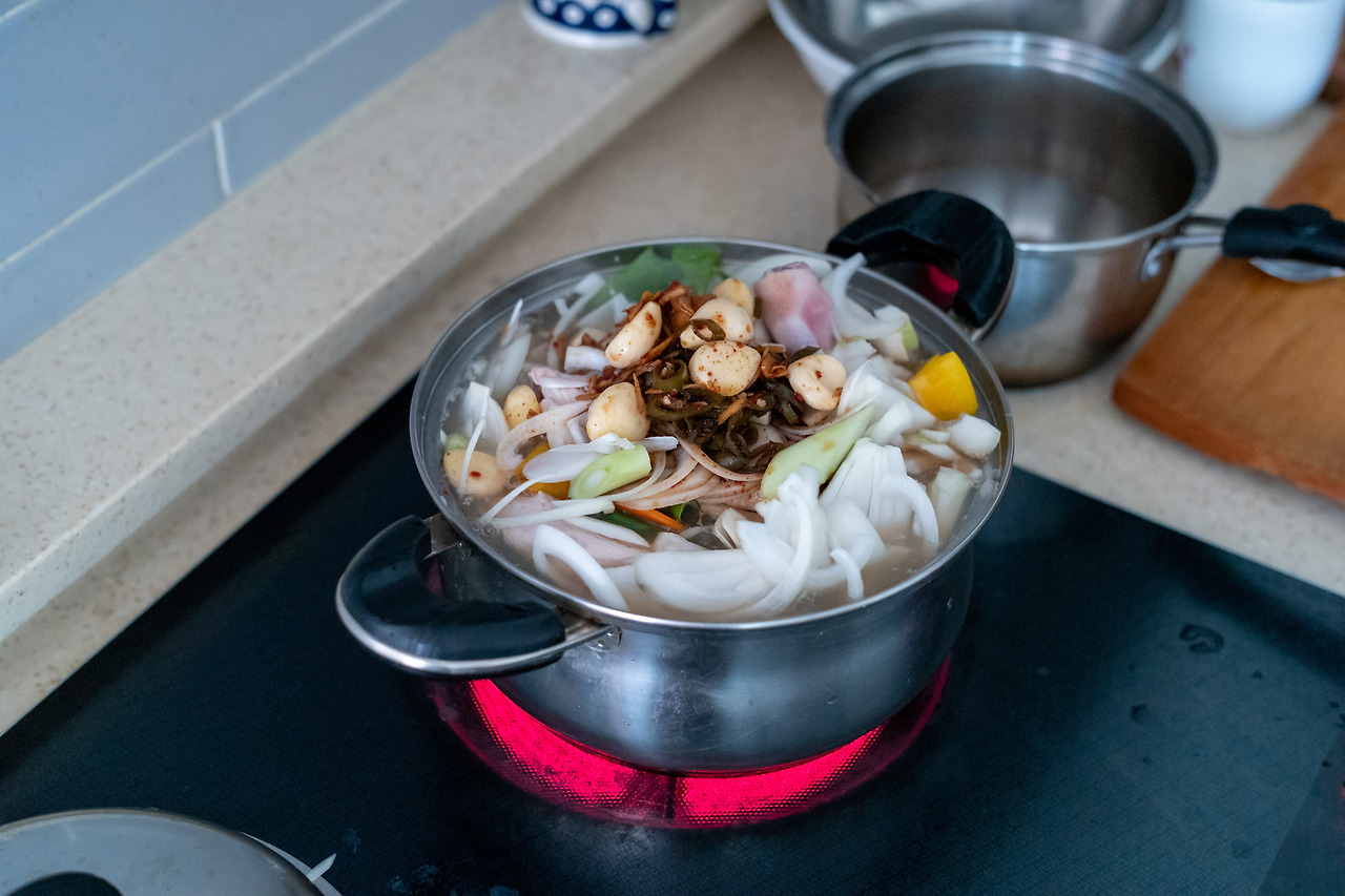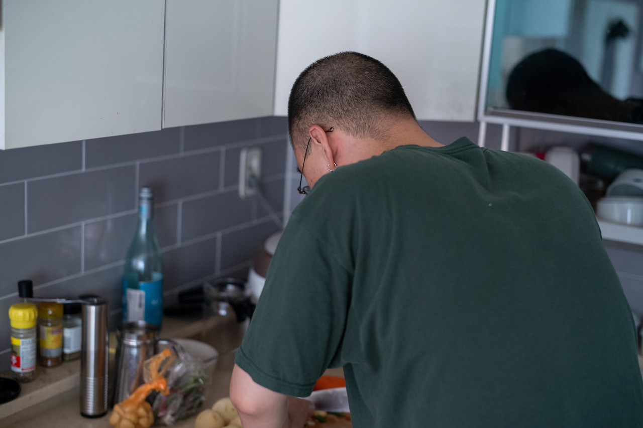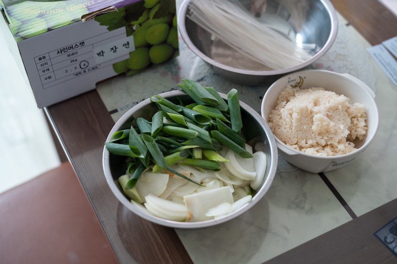 모습의 촬영 일정을 맞추고 방문하면서 준형의 테이블에는 요리를 위한 손질된 재료들이 놓여있다. 동료 작가, 공간의 운영자, 친한 형인 나의 방문을 위한 요리 준비가 한창이었다. 오늘의 요리는 찜닭, 처음 하는 요리라고 했지만, 신뢰와 믿음이 갔다. 작업실에서 묻어 나오는 그의 취향과 면모를 담기위해 방문했지만, 뜻밖의 선물을 받는 느낌이었다. 요리가 진행되는 과정에서도 마치 그림을 그리듯 이번 요리에 대한 이야기에서부터 지인에게 요리를 대접하는 이유까지 다양한 대화가가 오갔다.
