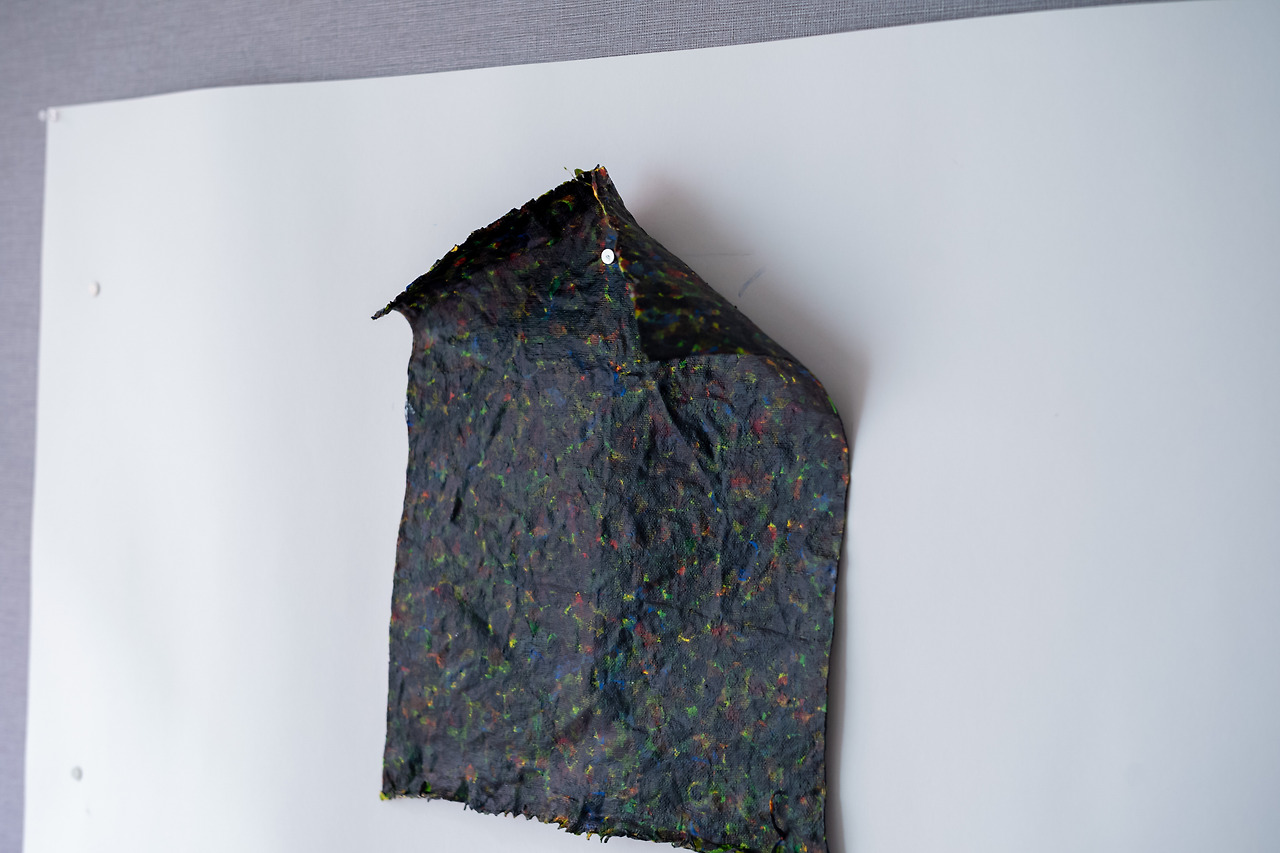 벽에 걸린 김, 이건 김이 아니라 그림이다. 어느 날 김밥에 대한 생각에 빠져 만들게 된 작업이라고 한다. 김밥을 만들어내는 과정과 질감을 회화적으로 표현한 작업이다. 곧 김밥의 속 재료들도 제작할 계획 있다고 했다. 준형은 그림이 요리 같다면 어떨까하는 말을 하곤 한다. 요리의 과정에 대입해보면 그의 작업이 더 내밀하게 보인다. 관객에게 향과 맛, 모양에서 호감 가는 이미지를 만들어가는 그의 작업을 보고 있으면, 자연스레 미소를 머금게 된다.