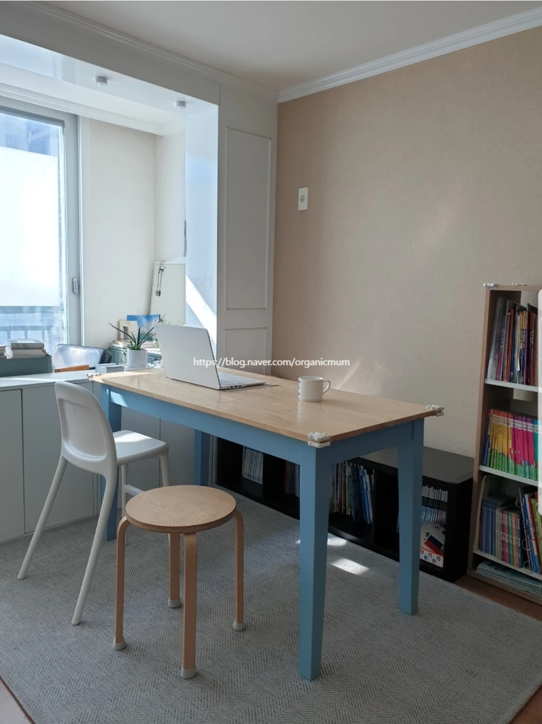 거실공부방, 거실서재화로 책육아하는 엄마들에게 인기를 얻는 컨셉이긴 한데 우리집에서는 여기서 책도 읽고 밥도 먹어야 했다.