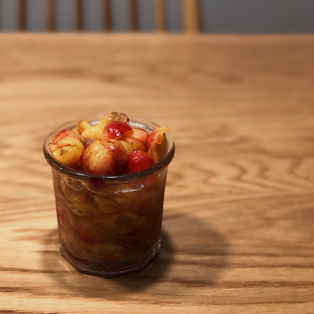 국자를 고쳐 잡아 반대로 저었다. 여전히 수많은 생각이 체리와 설탕 속에 뒤엉켜 둥둥 떠다녔다. 마침내 설탕이 녹았고 체리는 흐물텅해졌다. 물처럼 흐르던 빨간 국물이 어느새 제법 찐덕해졌다. 추억 여행에서 갓 벗어난 나는 갑자기 기분이 좋아졌다. 맛있는 때를 놓쳐 저 세상으로 갈 뻔(?)한 체리를 살려낸 것 같아 나 자신이 기특했고, 황량한 바다 한가운데에서 방향을 찾는 기적의 노질을 한 것 같아 안심됐기 때문이다. 그 사이 제법 많다 싶던 체리의 양이 반으로 확 줄어버렸다. 그만큼 나의 후회와 미안함과 우리의 간절함이 농축되어 있겠지. J를 만나는 날까지 이틀 동안 더 숙성해줘!