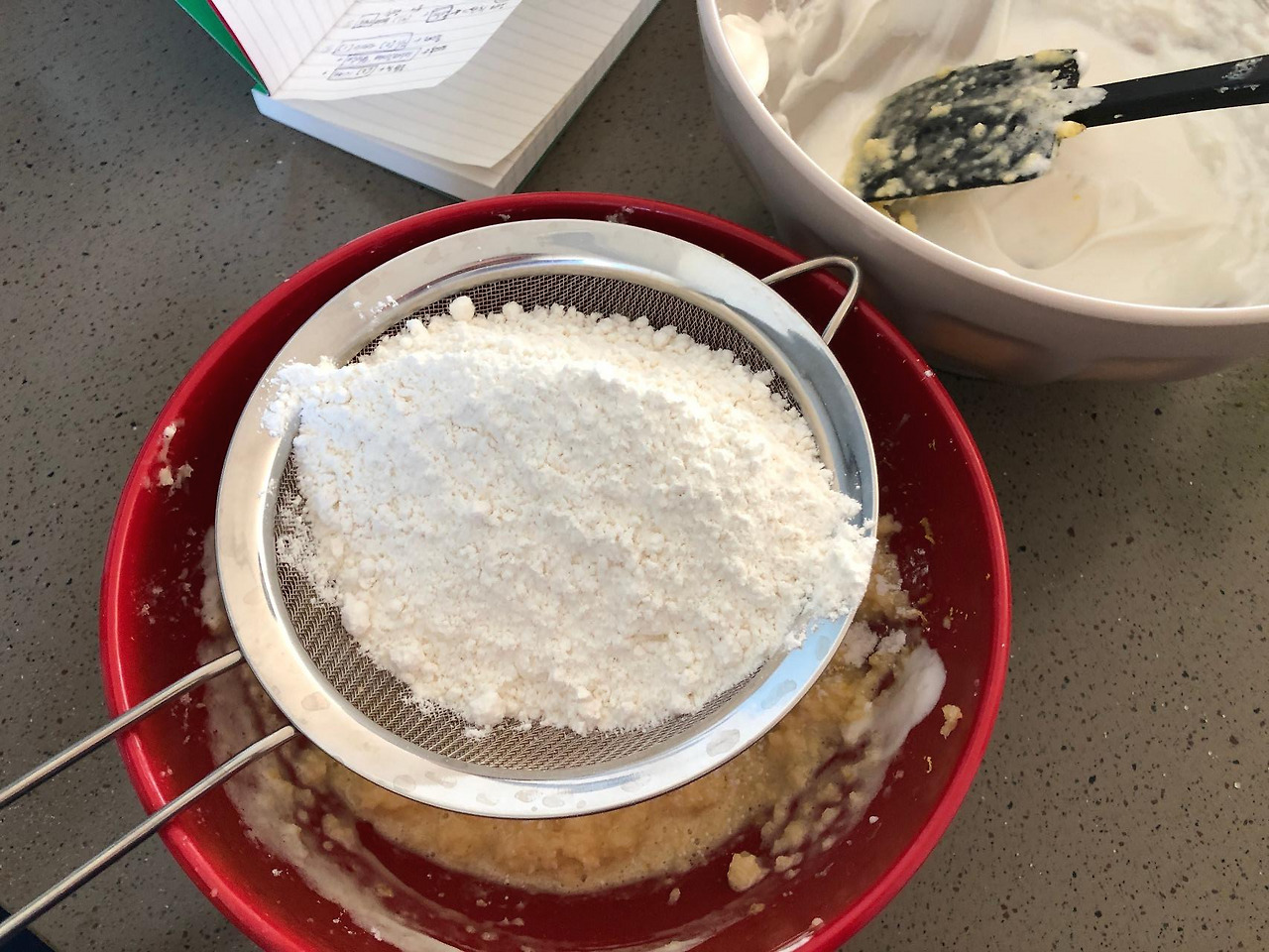 (우리밀 레시피가 아니라면) 레시피에 제시된 밀가루보다는 양을 적게 잡아줍니다. 다소 거칠고 투박한 우리밀이 물(습기)을 좀 더 잡아먹는 것 같습니다.