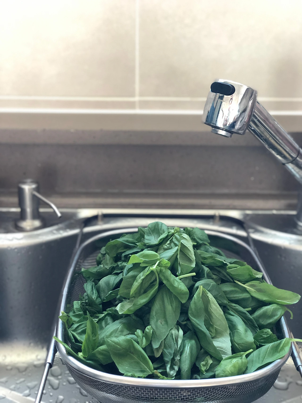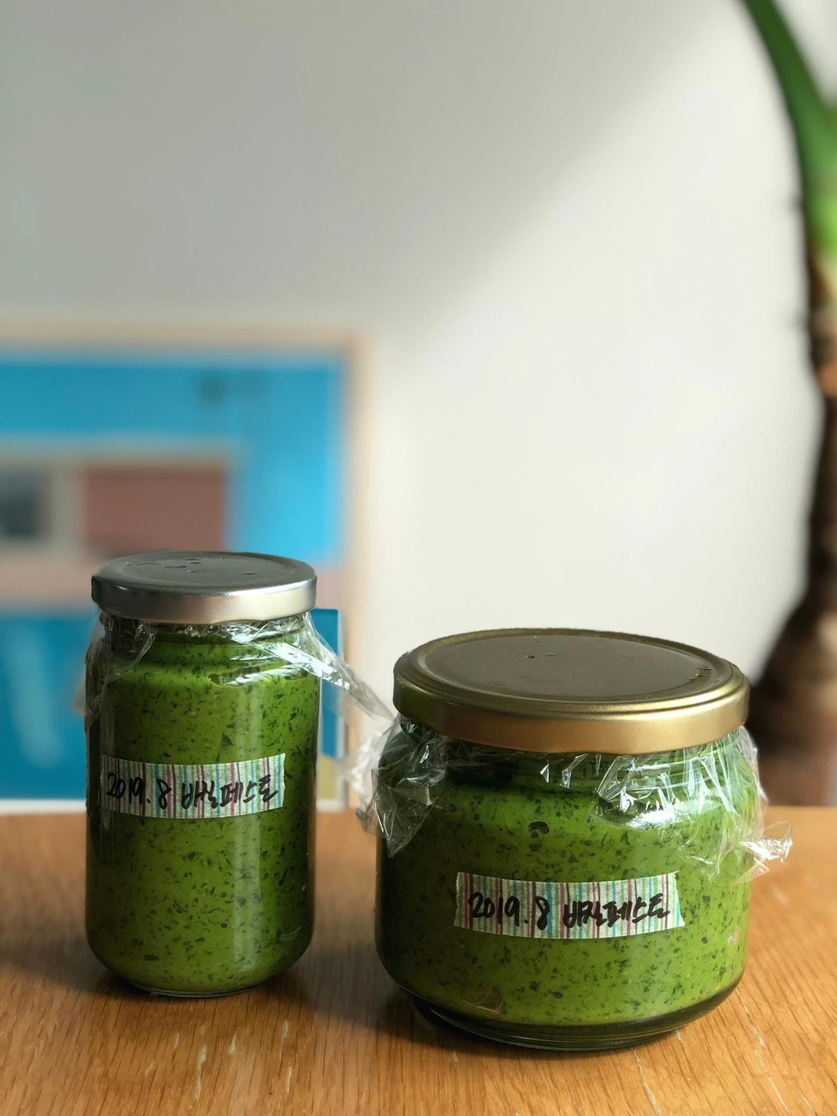 때마침 바질 페스토가 똑 떨어져서 양평의 어느 농부님께 잔뜩 바질을 샀다. 엄마가 한바탕 준 잣을 떠올리면서 말이다. 냉장고에 깊숙이 처박혀 잊을 뻔한 고다 한 조각, 올리브유와 마늘을 꺼냈다. 밋밋한 빵을 특별하게 해 줄 바질 페스토가 완성되는 건 순식간이다.
