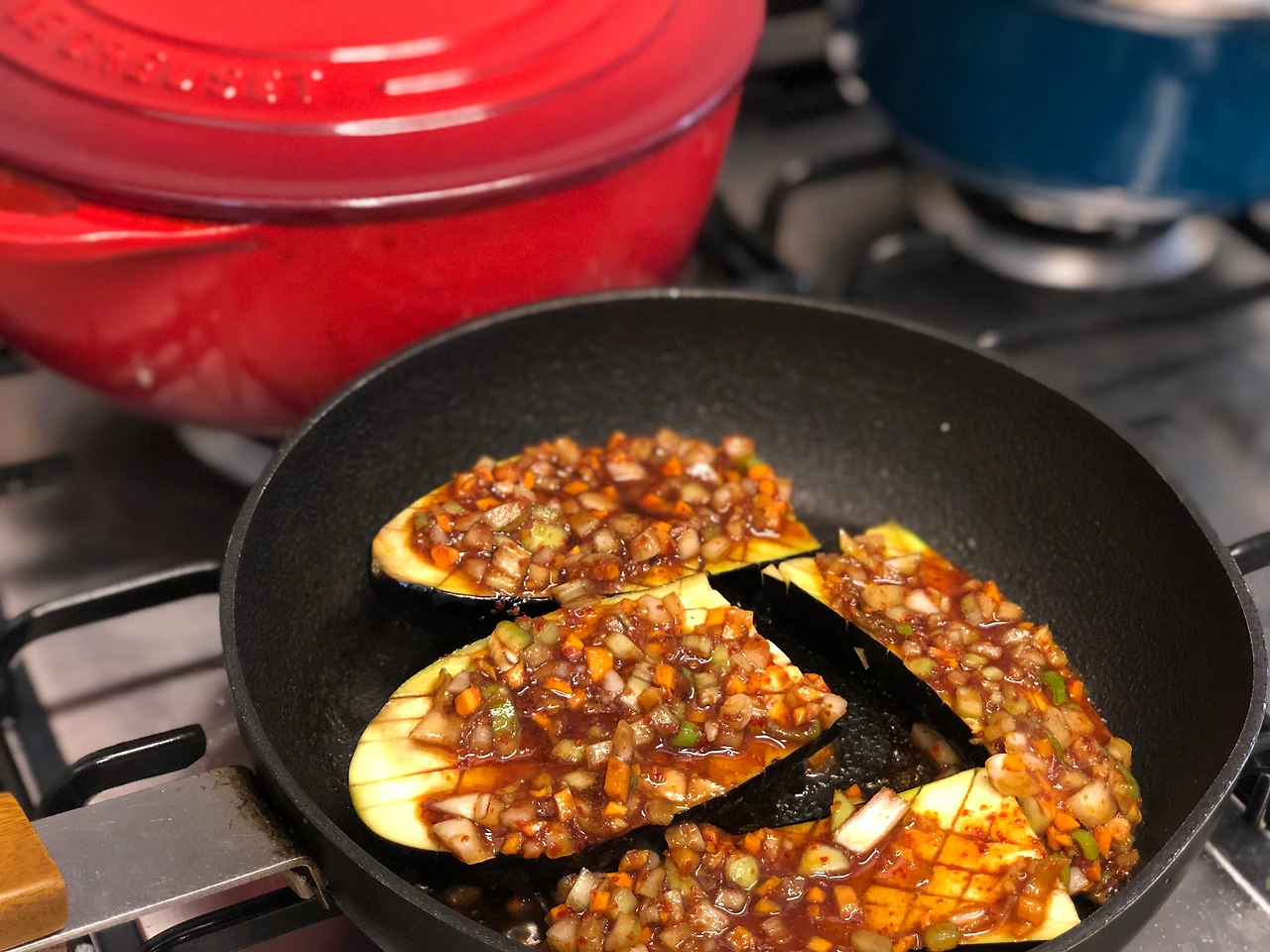 길쭉이 휜 가지는 반을 갈라서 작년에 발견한 황금비율의 양념을 끼얹어 들기름이 졸이듯 구웠다. 가지를 먹을 줄 알면 비로소 어른이라는데 그게 맞다면 저는 작년에 어른이 된 셈이다. 자랑입니다