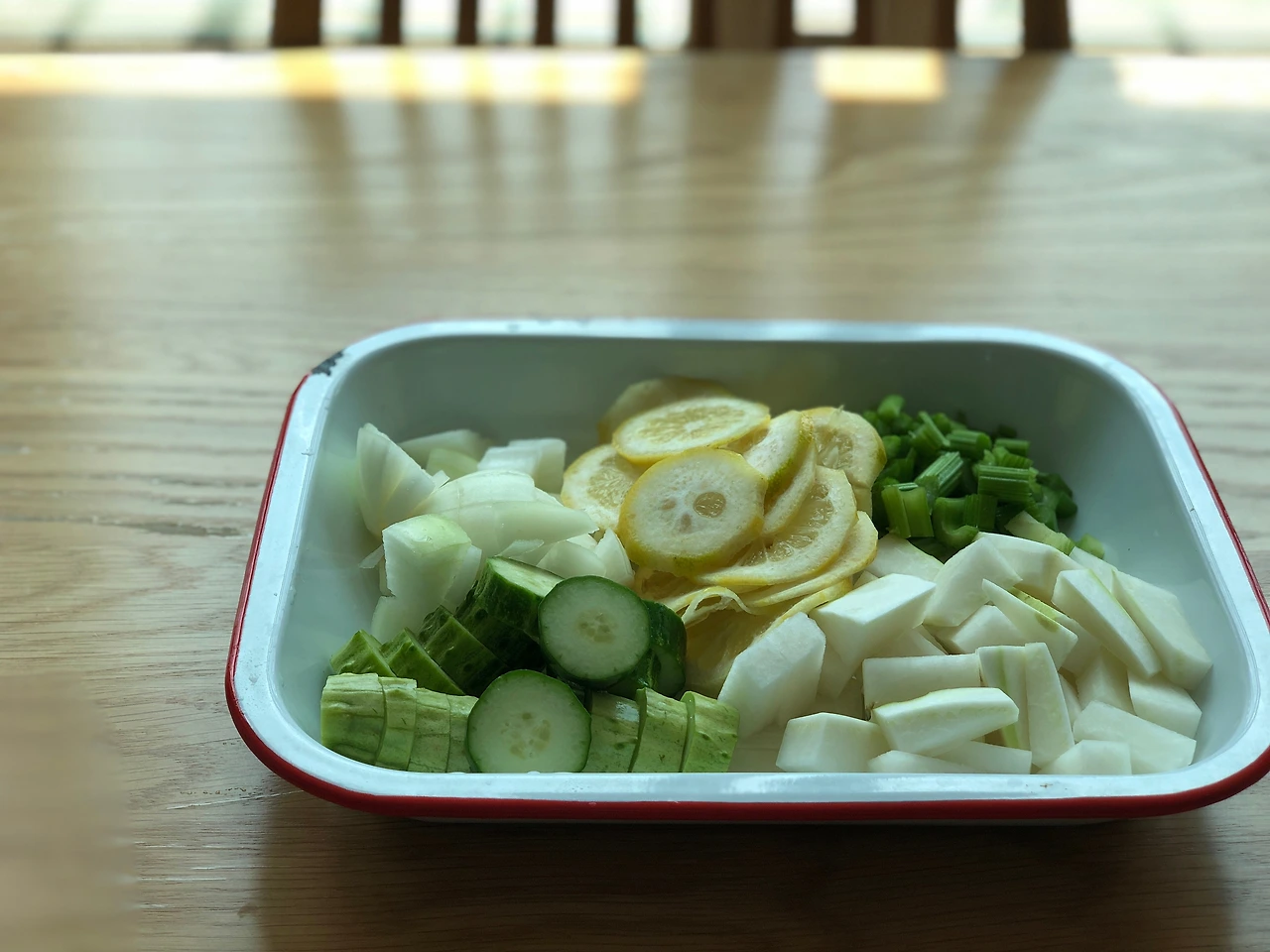 무언가 아쉬운 마음에 가는 여름의 끄트머리를 잡겠다고 다짐했다. 생협 매장에 가서 삼일에 걸쳐 각종 채소와 과일을 샀다. 그리고 요새 차고 넘친다는 양파도 틈틈이 장바구니에 담았다. 마치 시험 직전 벼락치기 공부를 하는 마음으로 토요일이 되기만을 기다렸다.