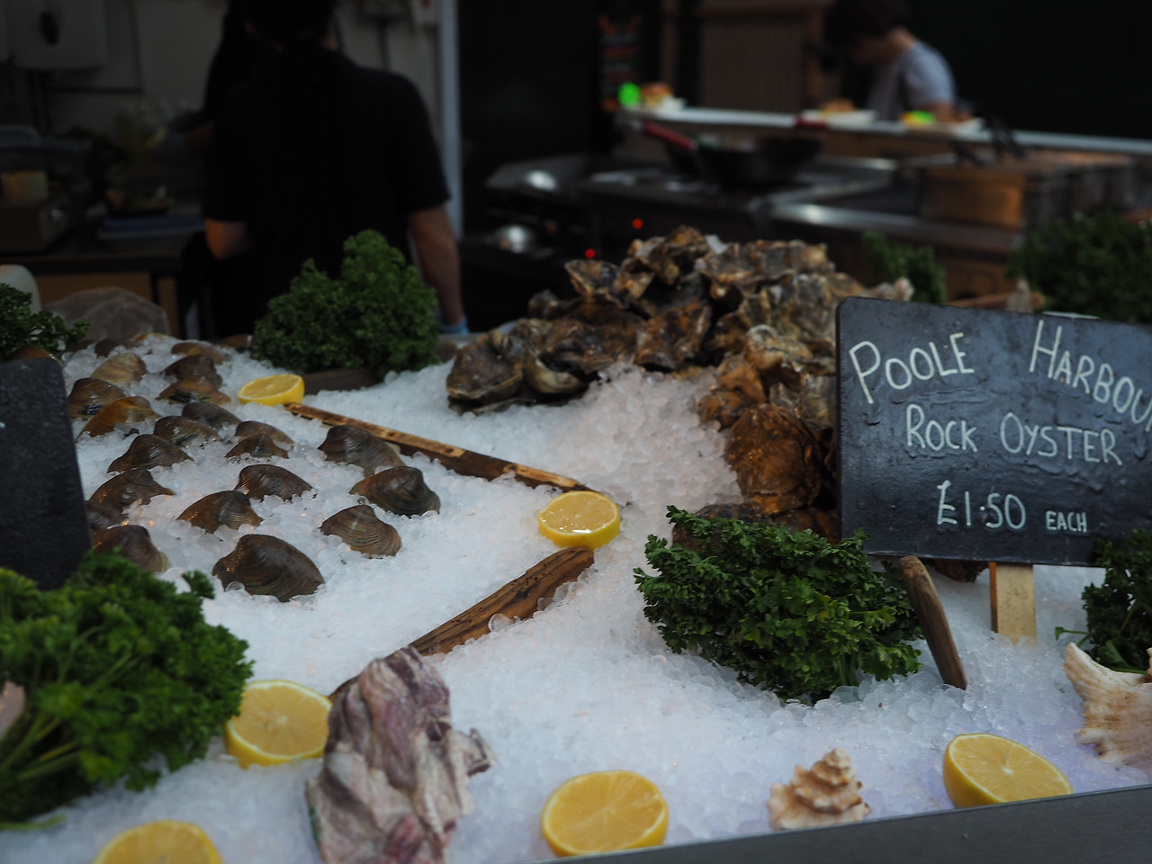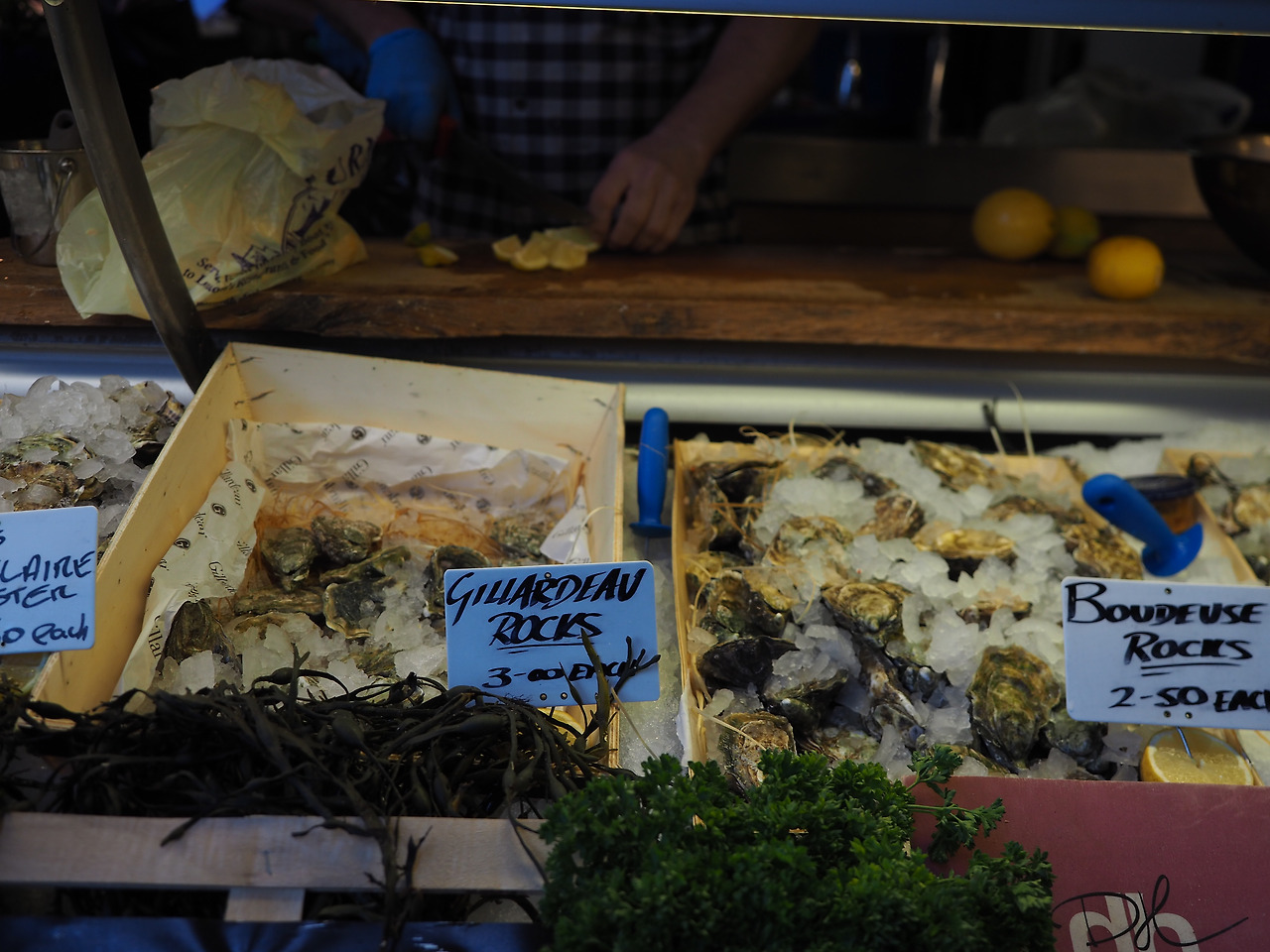 버로우마켓에 들르면 꼭 먹으라는 굴(Oyster). 눈이 번쩍 뜨이는 바다를 호로록-하는 맛이랄까.