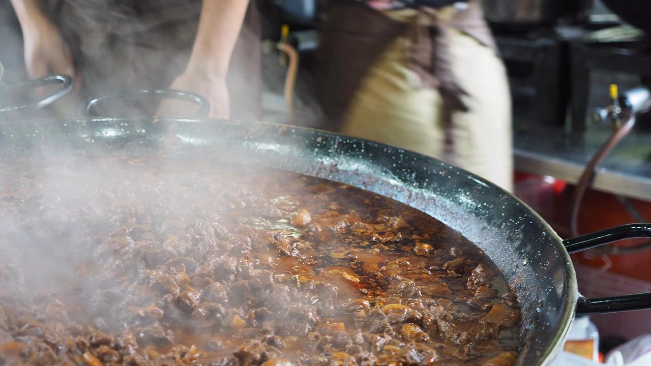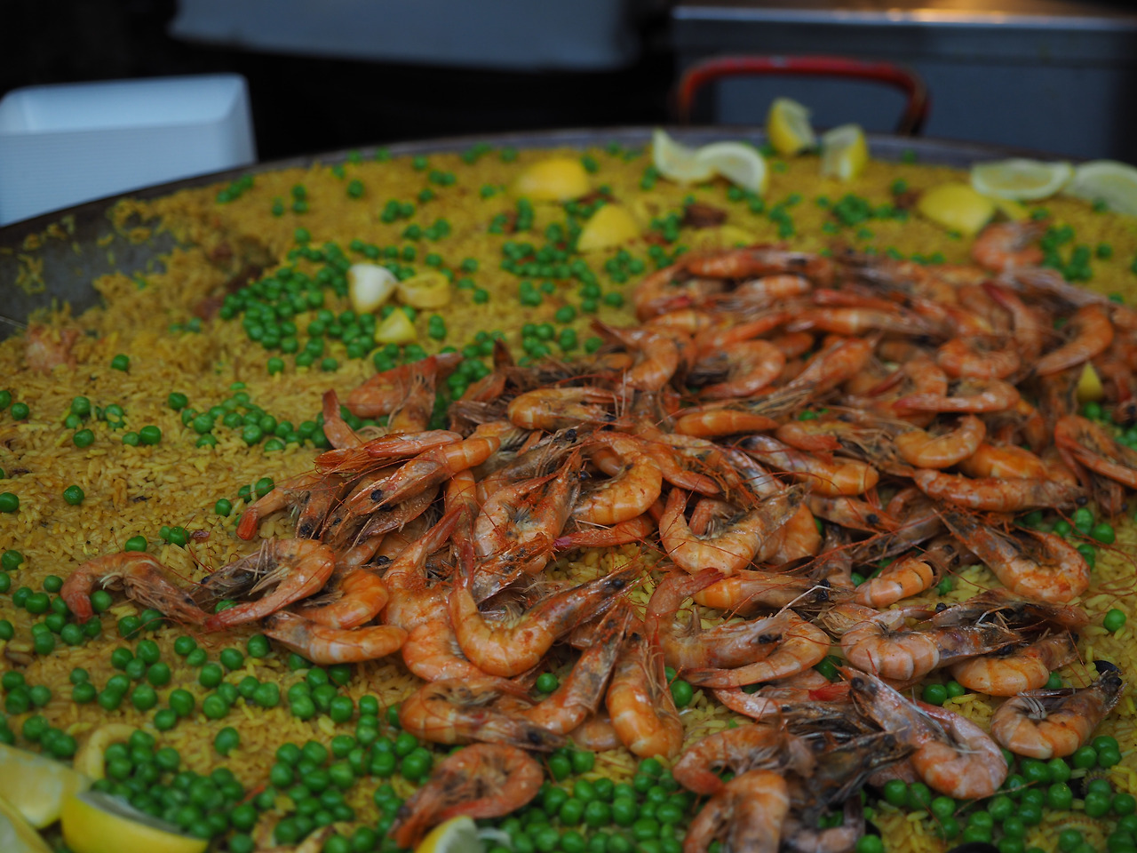 큰 빠에야 팬 위에서 지글지글 익어가는 빠에야. 아 또 먹고 싶다.