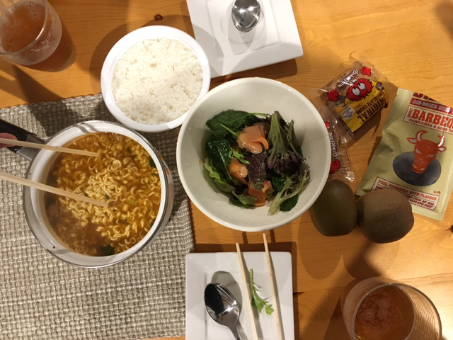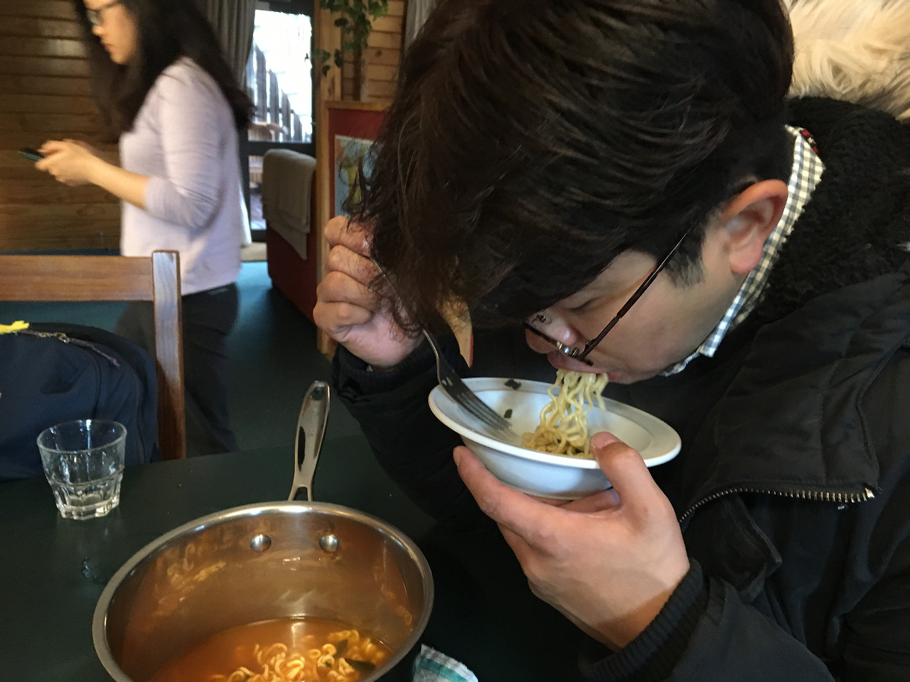 마지막 날 밤이 되었습니다. 한국에서 가져온 남은 햇반과 라면을 처리하기로 했습니다.