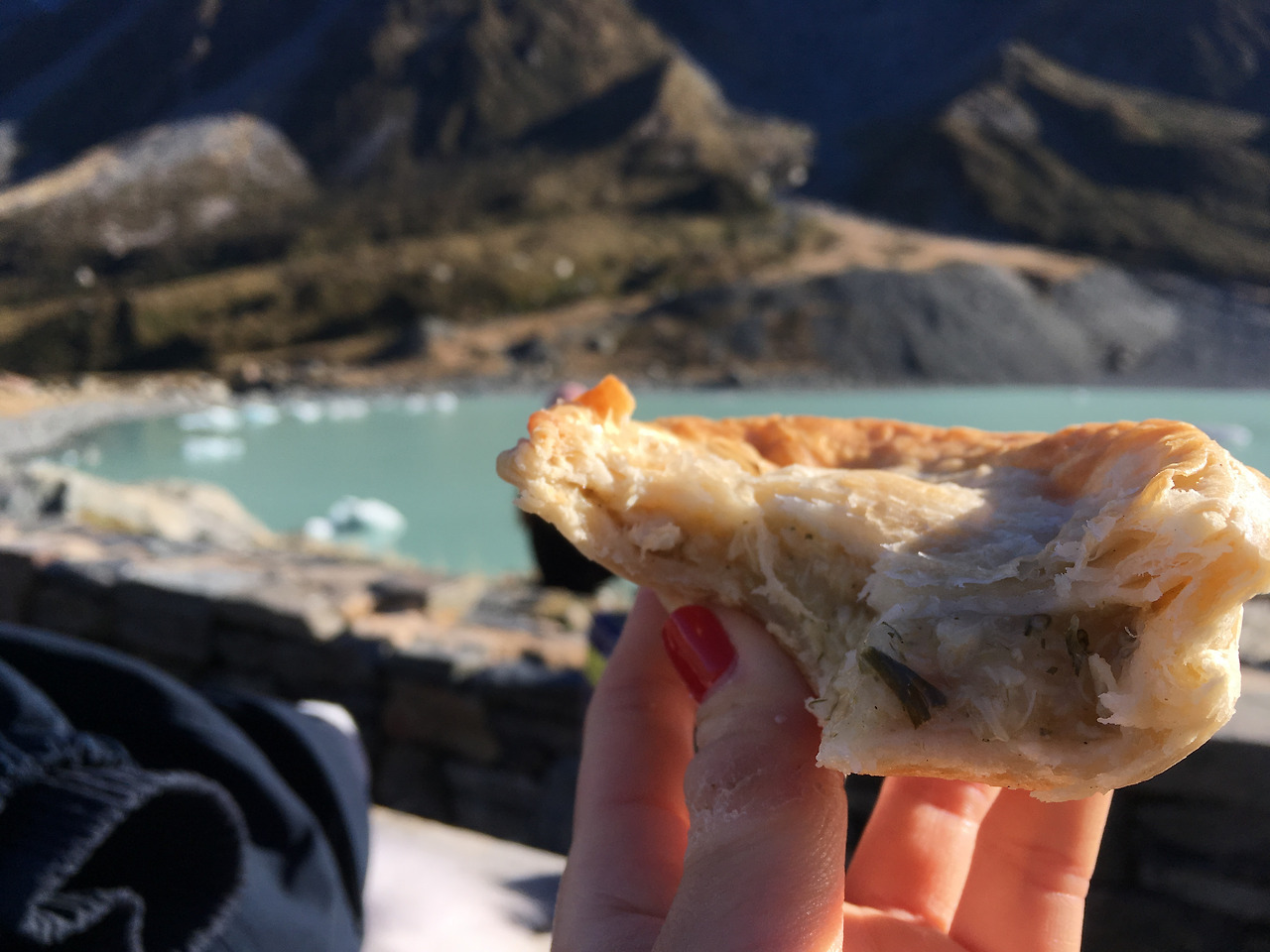 십 년 전에는 싸고 맛있어서 하루도 안 빠지고 거의 매일 먹다시피 했는데, 지금 생각해보면 어떻게 저걸 매일 먹고살았을까 싶어요. 엄청 짜고 느끼한 맛이거든요. 십 년 동안 정작 뉴질랜드는 하나도 변한 것이 없는데, 아마 제 입맛이 변했거나 아니면 저 파이 맛이 바뀌었거나 둘 중 하나겠죠. 그런데 후커벨리 끝자락에서 맛 본 파이의 맛은 예술이었습니다.