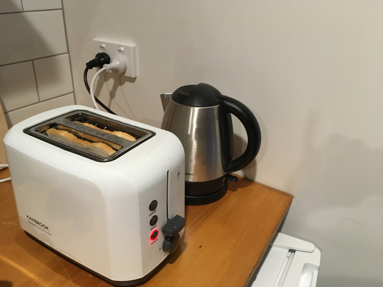 오호, 이곳에도 백팩커스 주방의 free food box를 볼 수 있었습니다. 주인이 준비한 것이겠죠. 일 때문에 조식을 따로 챙겨주지 못한다는 집주인의 배려가 돋보입니다. 자기가 없으니 마음껏 뭐든 편히 사용하라는 메시지와 함께 말입니다.