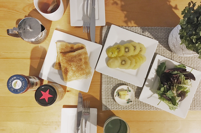 제가 제일 좋아하는 그린스무디와 함께 했습니다. 저기 놓인 각종 잼과 버터, 빵까지 프리.