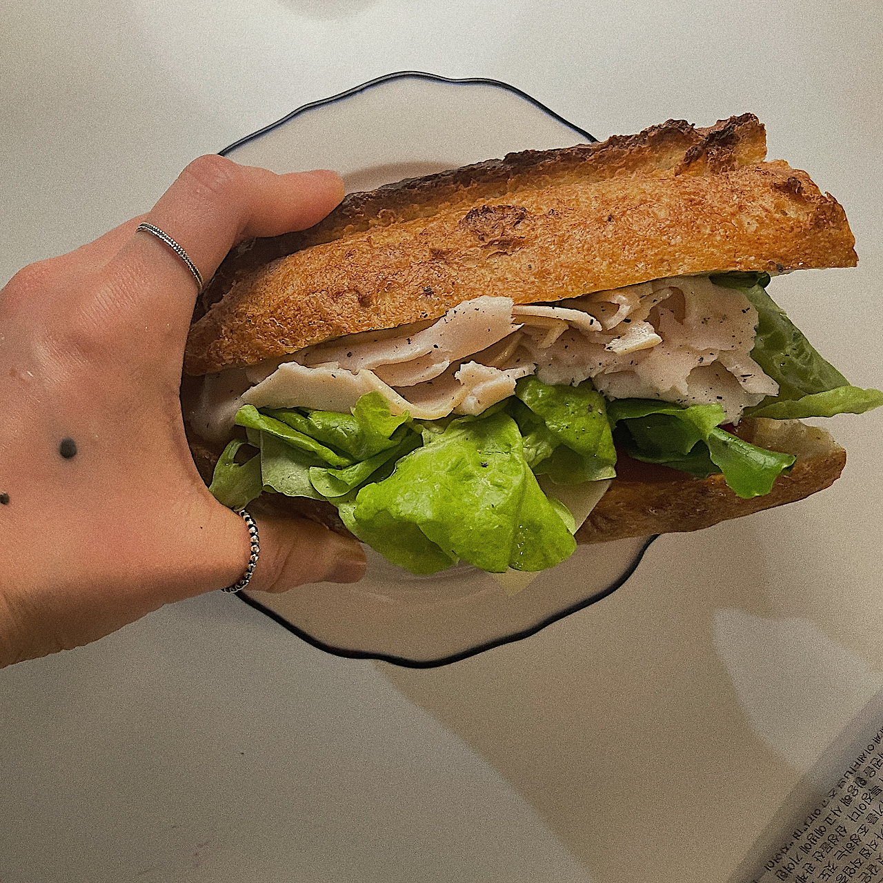 덮는 게 가능할까 싶을 정도로 속을 꽉 채워 빵을 꾸왁- 누를 때, 여기저기 떨어지는 자투리를 주워 빵 틈바구니에 넣을 때마다 그 빈약한 샌드위치가 떠오른다.