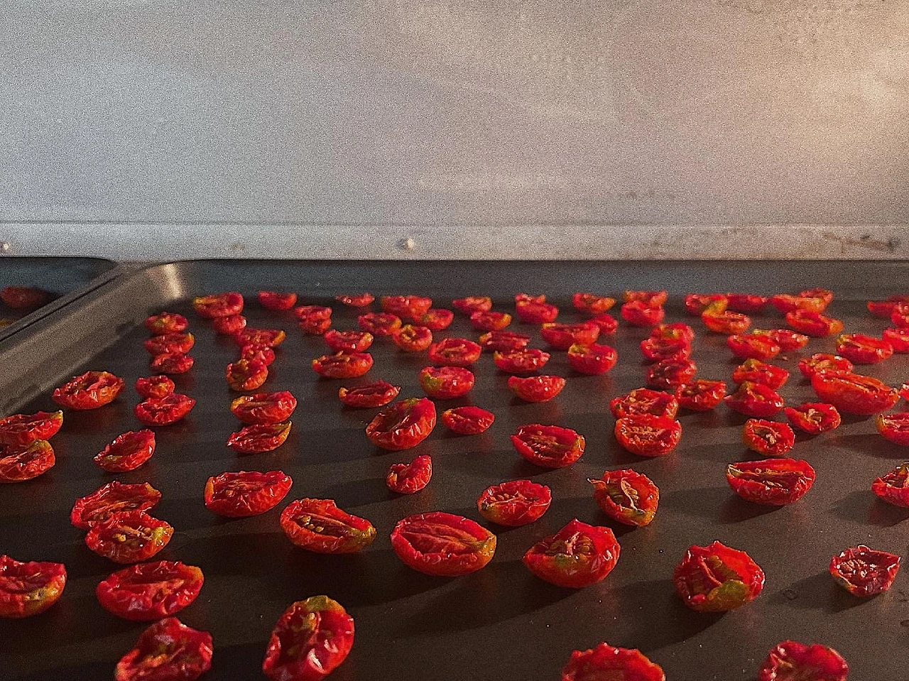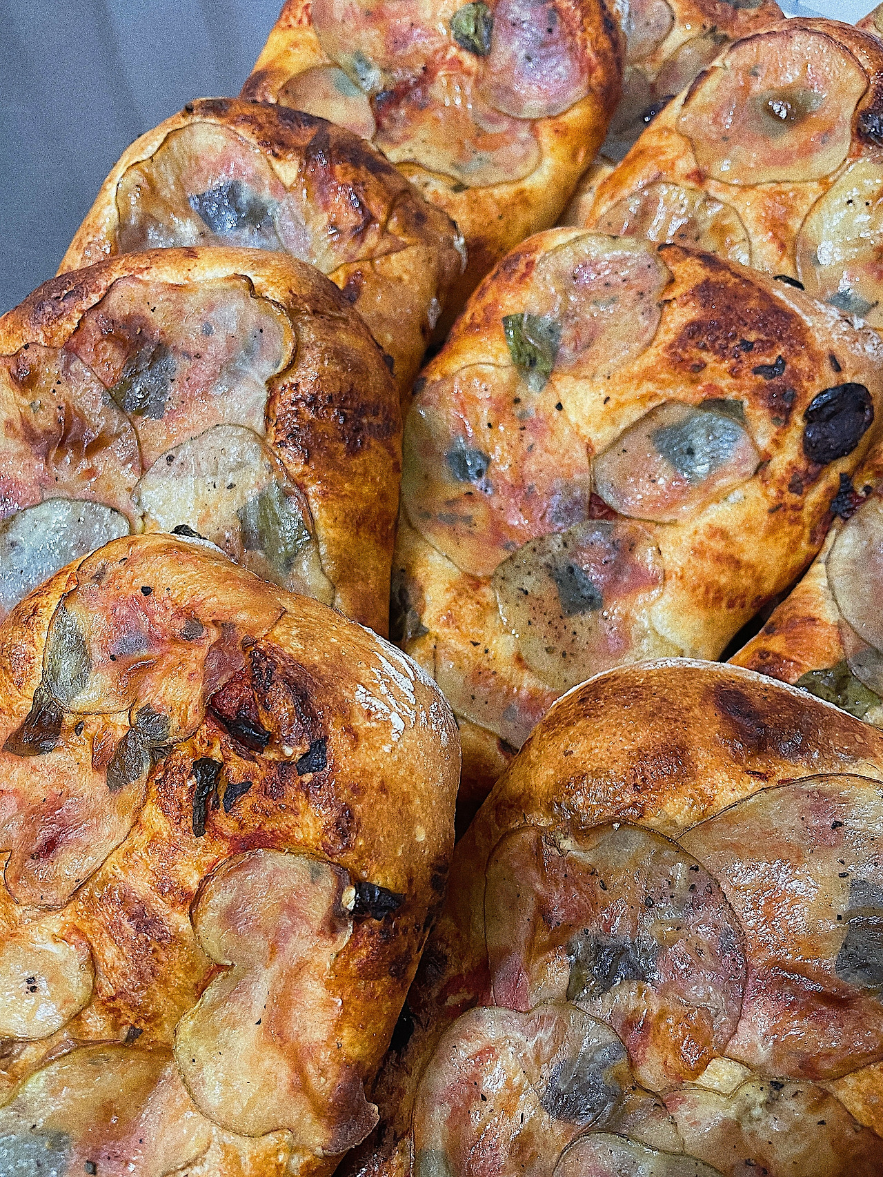 손님이 가게를 떠난 뒤 잠시 생각에 잠겼다. 그 길로 근처 생협에서 하지(여름) 감자와 가장 많이 보이는 방울토마토를 사서 돌아왔다. 그새를 못 참고 방울토마토 하나를 꺼내 앙 베어 물었다. 짭조름하고 달았다. 껍질은 단단했고 맛이 진했다. 방울토마토는 오븐에서 낮은 온도로 오래 말리기로 했다. 이것이 날린 수분만큼 달콤하고 짭찌름한 맛이 농축된 ‘선드라이드 토마토’다. 볕이 아니므로 정확히는 ‘오븐 드라이드 토마토’이겠지만. 게다가 토마토는 수분이 많아서 빵 반죽에 그대로 들어가면 반죽을 헤칠 수 있기 때문에 말리는 건 여러모로 당연한 선택이다. 감자는 아주 얇게 썰었다. 이대로 오븐 열이 닿으면 은은한 감자 향이 맛이 강한 방울토마토와 잘 어울릴 것 같았다. 그런데 뭔가 빠진 느낌이 들었다.