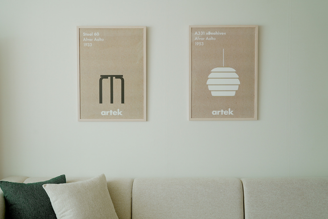 브랜드 포스터를 인테리어용으로 걸어두었어요.