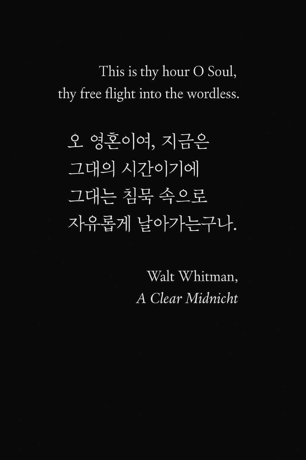 — 월트 휘트먼, 「어느 맑은 한밤」