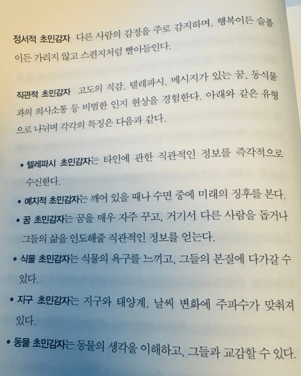 내 경우는 음식·정서·직관형 초민감자에 가까운 듯하다.