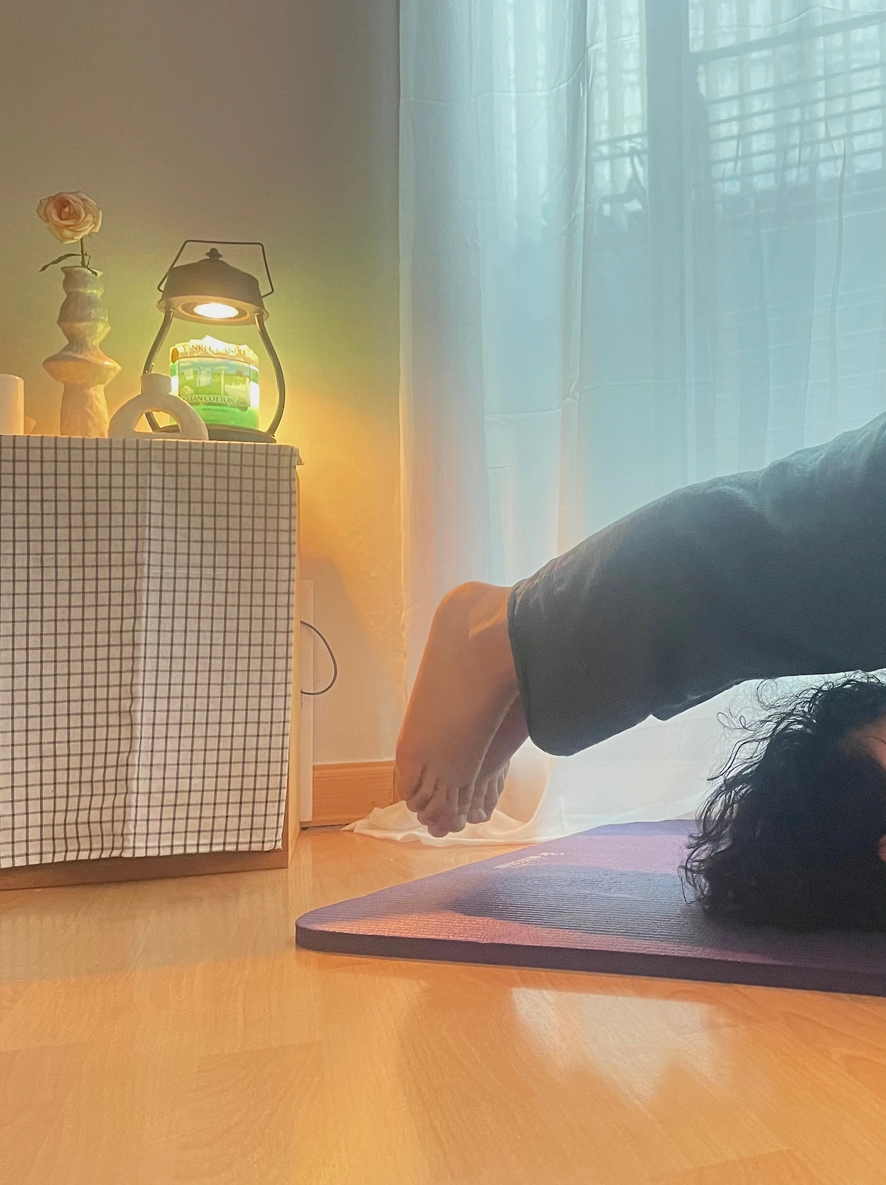 목 뒤로 발을 넘기는 자세, 다시 나의 몸을 살피려는 첫 목표다. 이젠 거의 목 뒤로의 발과 바닥이 조금씩 가까워지고 있다. 쏙쏙 아프기도 시원하기도. 무거웠던 어깨가 조금씩 가벼워지고 있다.