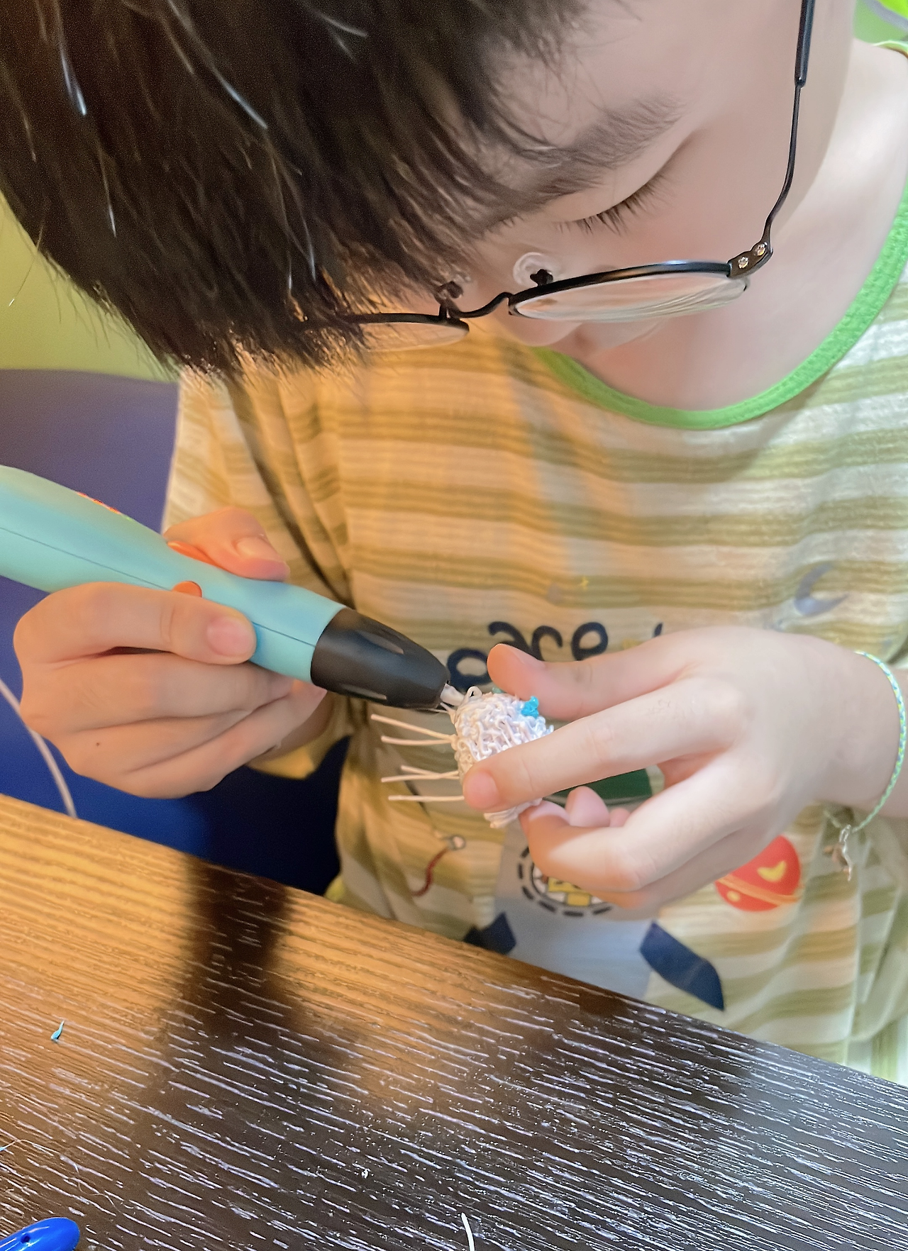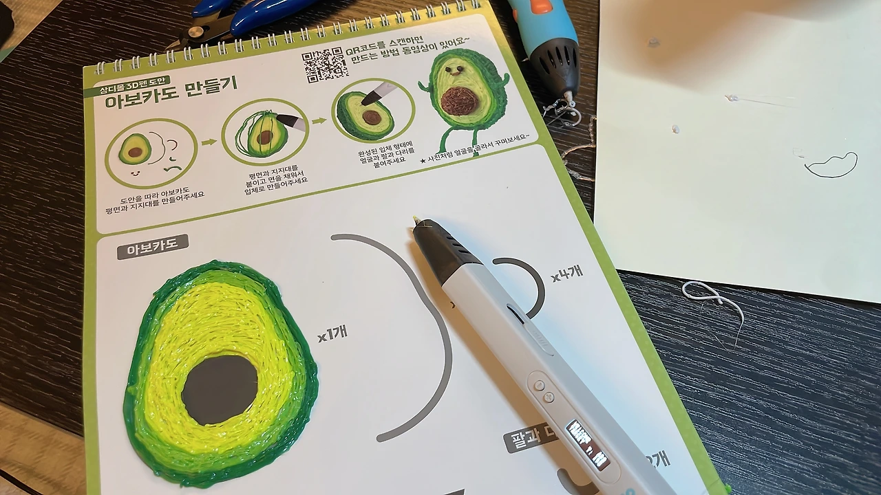 처음에 부푼 꿈을 안고 아이와 함께 즐거운 3D펜 시간을 가질 줄 알았는데, 역시 때가 있었나 봅니다. 그때는 확실히 잘 쓰지도 못하고 금방 뭉쳐버리는 필라멘트에 찡찡대며 안된다고 눈물을 글썽이던 게 엊그제 같은데 그새 좀 컸다고 장갑도 한쪽만 끼고 가이드북에 있는 작품 말고 본인이 원하는 걸 만든다고 합니다. 언제 이렇게 컸는지 정말 하루하루가 다르네요.
