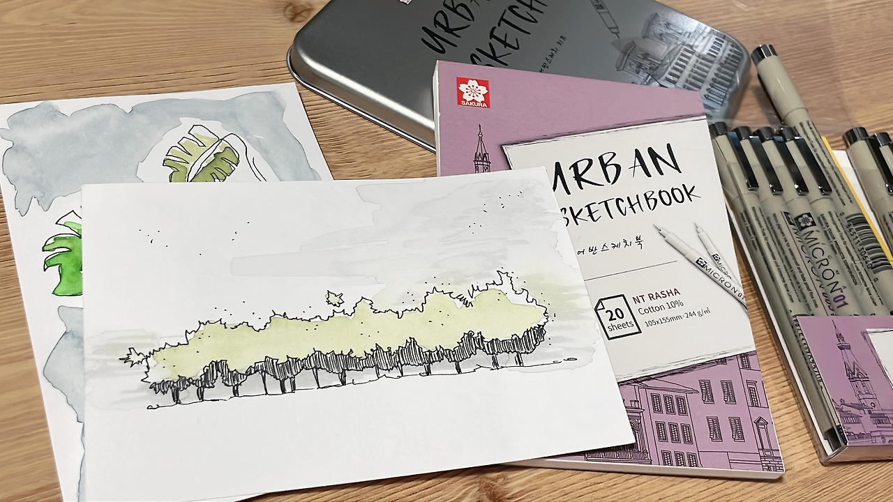 약칭, USk. 직역해보자면, '도시에서 스케치를 하는 행위'인 어반 스케치는 '우리가 살아가는 공간을 돌아다니며 눈에 보이는 것들을 손으로 옮겨 종이에 흔적을 남기는 것'을 뜻합니다.