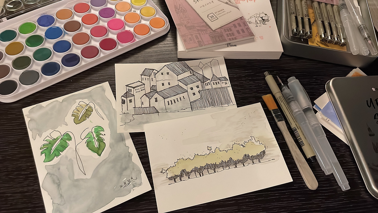 유튜브를 보고 있는데 정말 멋진 풍경을 펜으로 슥슥슥하더니 물붓으로 스스슥~ 하며 그리는 영상이 떴다. 처음엔 수채화 그림인 줄 알고 몇 개를 더 찾아봤는데 이런 그림을 어반 스케치라고 한다고 했다. 나도 모르게 넋 놓고 보고 있었다.