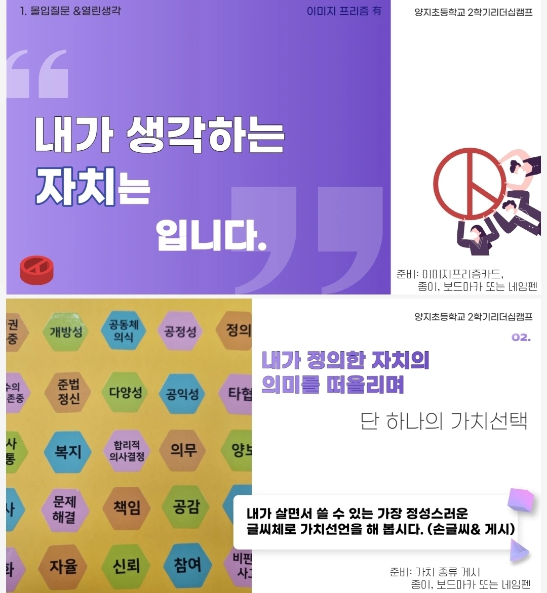 한 초등학교 학생자치회 임원들을 대상으로 하는 리더십캠프에 출강 의뢰를 받아 갔다.