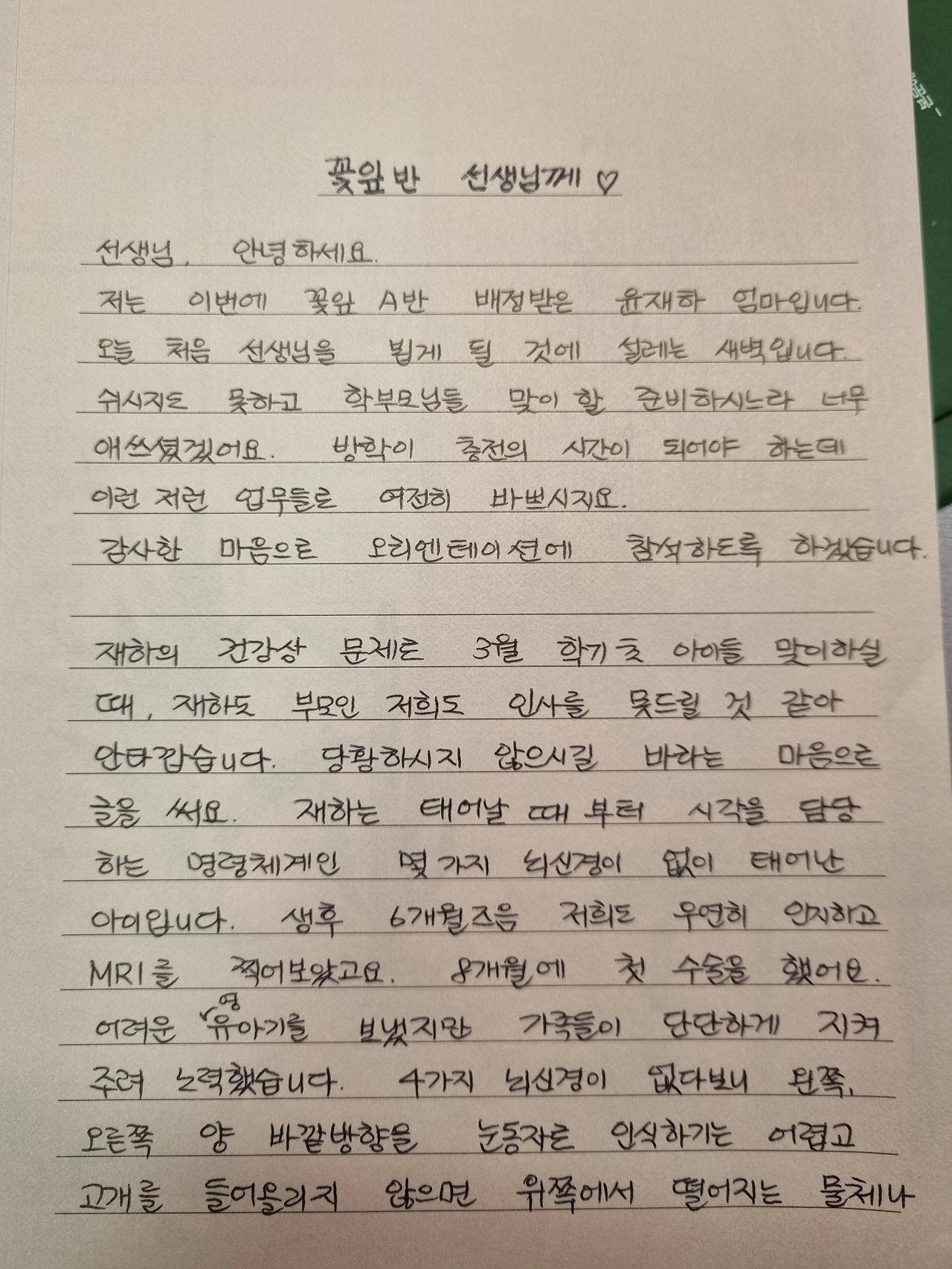 불편한 아이의 부모로서 새로운 담임선생님께