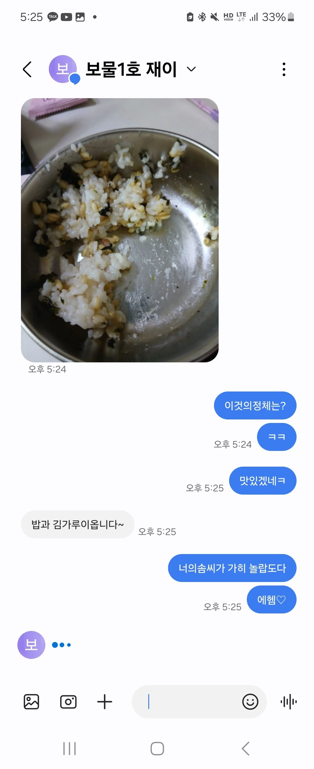밥은 하고.. 글쎄.. 반찬으론 뭘 먹으면좋을까? 재이가 잘 찾아서 챙겨주고 너도 먹고~ 고마워 딸.