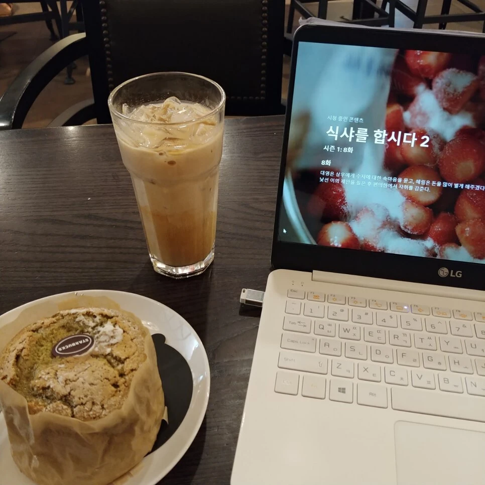 서둘러 자리를 잡고 시원한 아이스라떼를 주문했다. 그리고 달달한 녹차 팥 카스테라도 함께. 녹차와 팥의 조합이라니 맛이 너무 궁금하다. 노트북을 켜고 요즘 다시 정주행 중인 <식샤를 합시다 시즌2>를 보았다. 달달한 디저트를 먹으며 좋아하는 드라마를 보니 이 곳이 진정 천국이 아닌가 싶다.