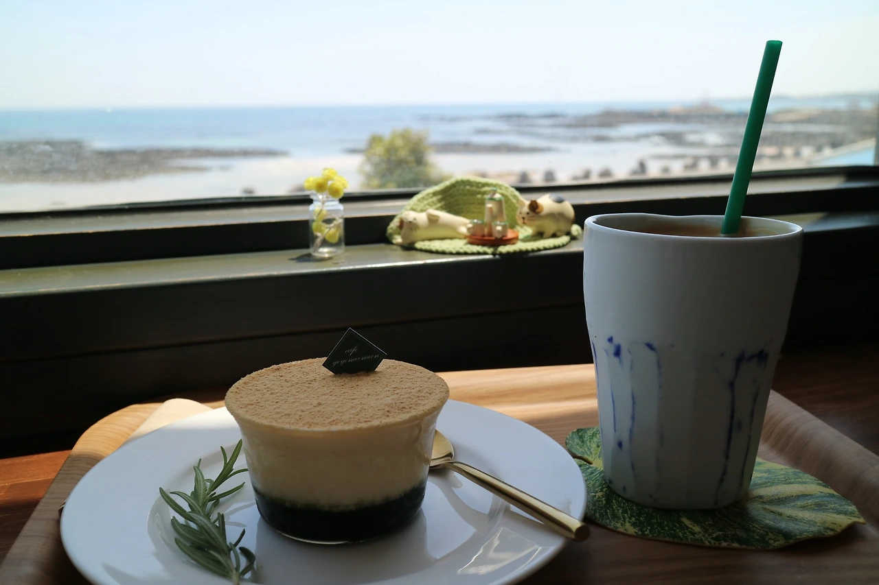 노트북을 덮고 가만히 제주 바다를 바라본다. 주문한 '인절미 쑥 티라미수'를 한 입 먹으며 고소하면서 뒤에 느껴지는 쑥의 진한 맛을 느끼니 비로소 제주가 눈에 보이기 시작한다.