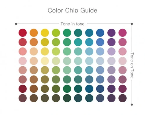 톤인톤은 같은 톤 안에서 컬러를 바꿔 통일성을 주는 것입니다. 톤온톤은 같은 컬러 위에 톤을 변화시키며 통일성을 주는 것입니다.