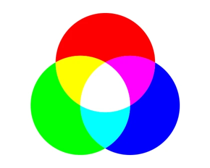 빛체계는 빛의 3원색은 RED, GREEN, BLUE 모니터 등에서 많이 보는 RGB가 되겠습니다. 합산할 수록 흰색처럼 밝아지기 때문에 가산혼합 방식으로 컬러를 만듭니다.