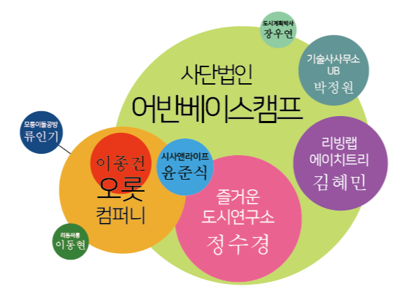 그렇게 만나게 된 것이 즐거운도시연구소 정수경 박사다. 그는 즐거운도시연구소가 CEO역할을 하는 사단법인 어반베이스캠프의 이사장을 맡고 있었다. 내가 찾던 인물이라 생각했다. 즐거운도시연구소의 마을철학도 좋았고 어반베이스캠프의 구성이 젊은리더, 경험많은 참모, 성장하는 서포터가 모두 있는 조직이었다. 이상적이고 균형있는 조직형태였다. 빠르게 투입하여 성과를 내는 오롯컴퍼니와도 잘 맞을 것 같았다.