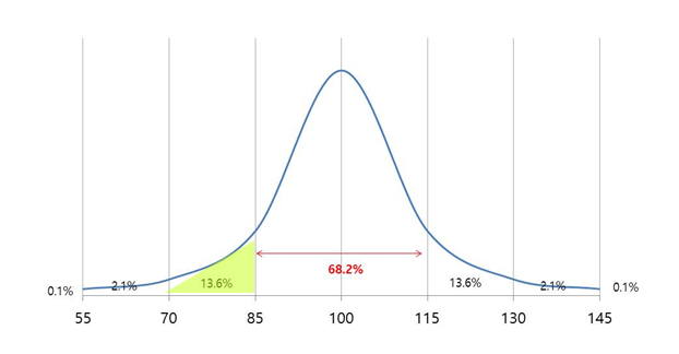 IQ가 85 이상이면 평균 범주에 해당하고, 70 이하면 지적장애에 해당하기 때문에, 느린 학습자는 지적장애는 아니지만 평균 지능보다는 낮은, 경계선의 지능을 가진 이들을 말한다.