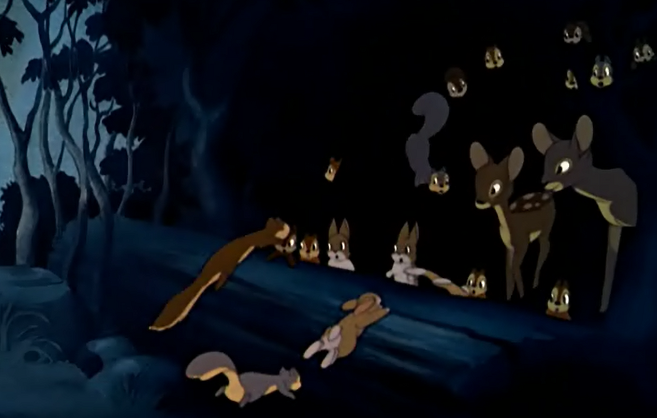백설공주와 함께 잠들어 있던 동물들은 그녀를 깨우지 않고 조용히 도망친다.